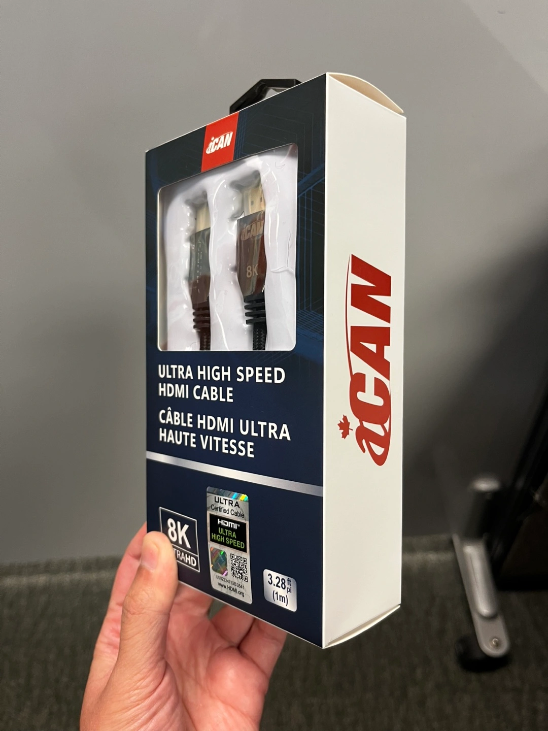 Selling a iCan Ultra High Speed HDMI Cable! It supports 8K resolution and is 3.28 ft (1m) long. Comes in its original packaging.