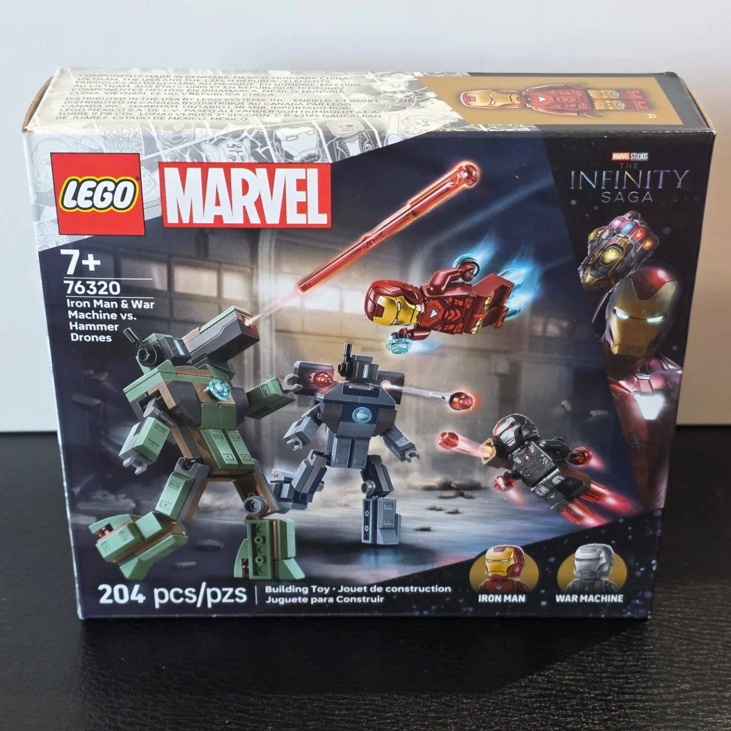 Build the Iron Man & War Machine vs. Hammer Drones set from LEGO Marvel's Infinity Saga. It's building toy number 76320 and contains 204 pieces. Great for Marvel fans!