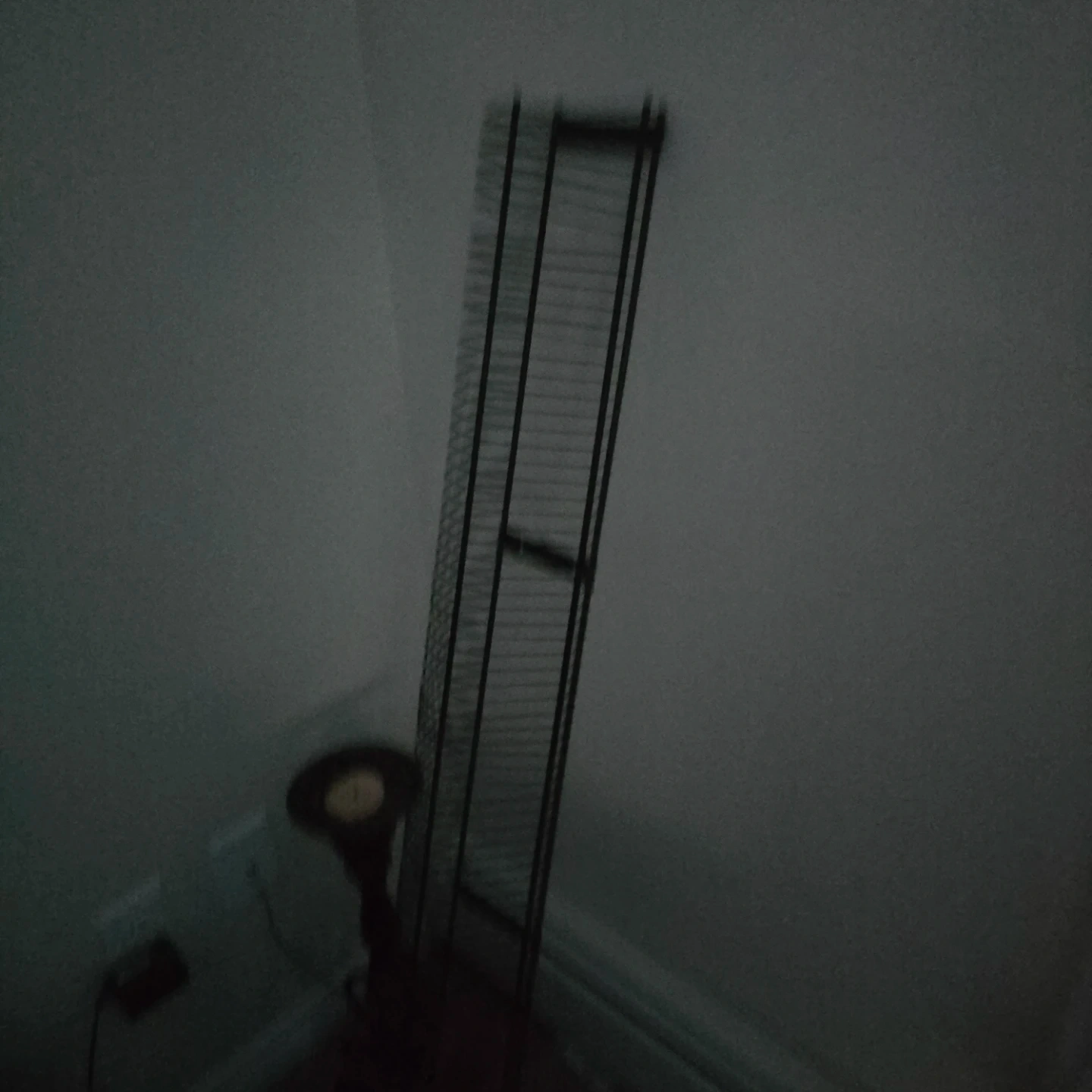 This is a tall, narrow metal shelf unit with multiple levels. It appears to be made of black metal wire. It's suitable for storing books, media, or small decorative items.