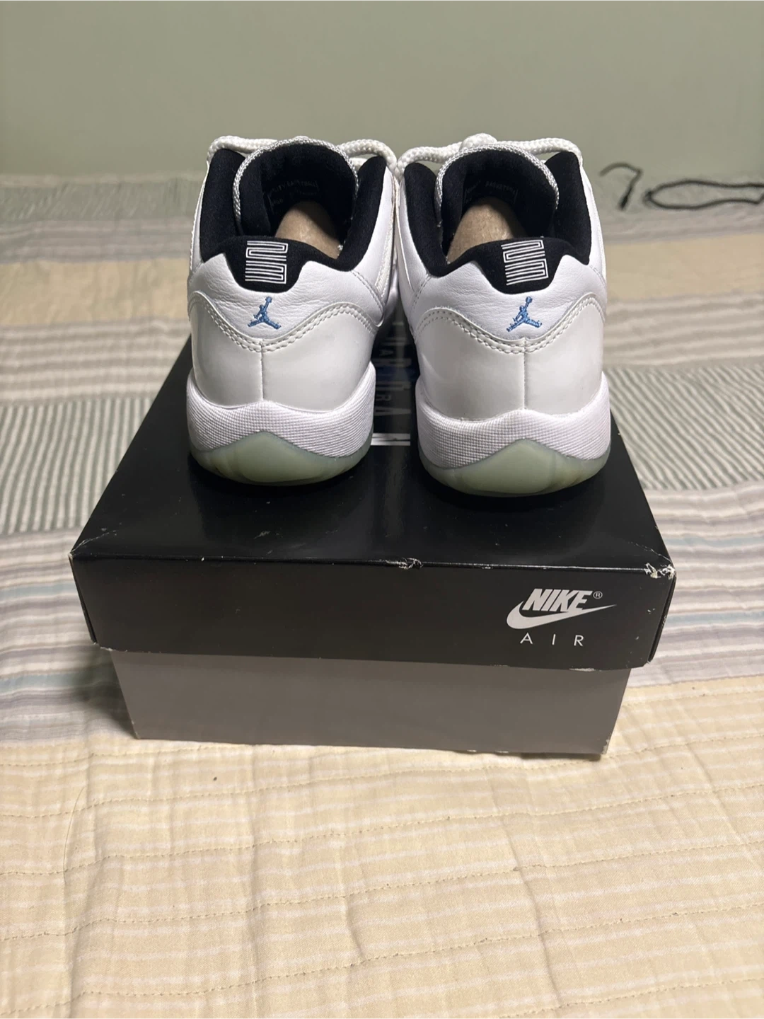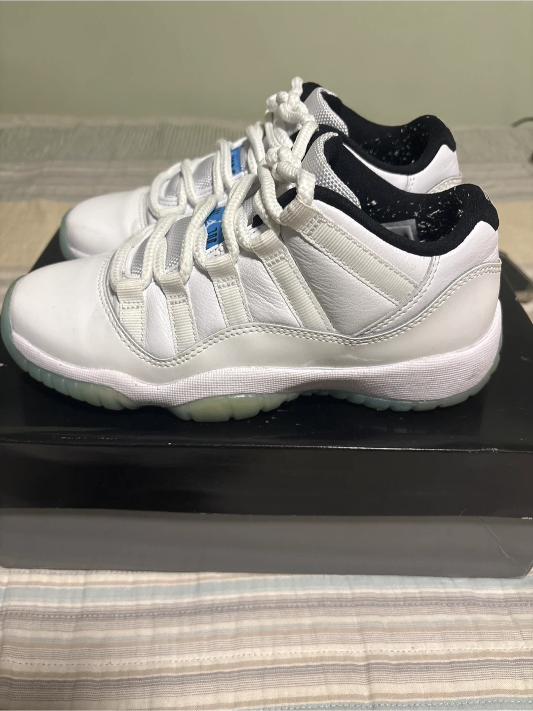 Selling a pair of Air Jordan 11 Retro Low (GS) in white, legend blue, and black. These are a size 4Y. They come with the original box!
