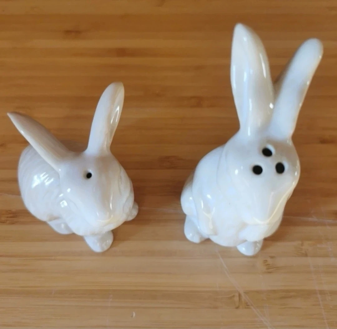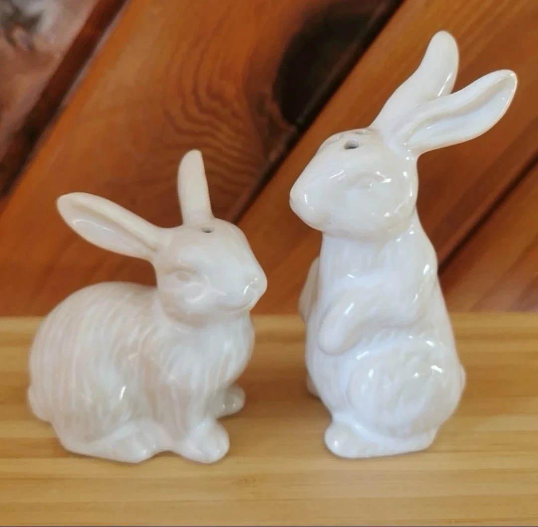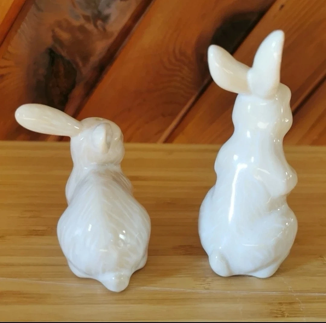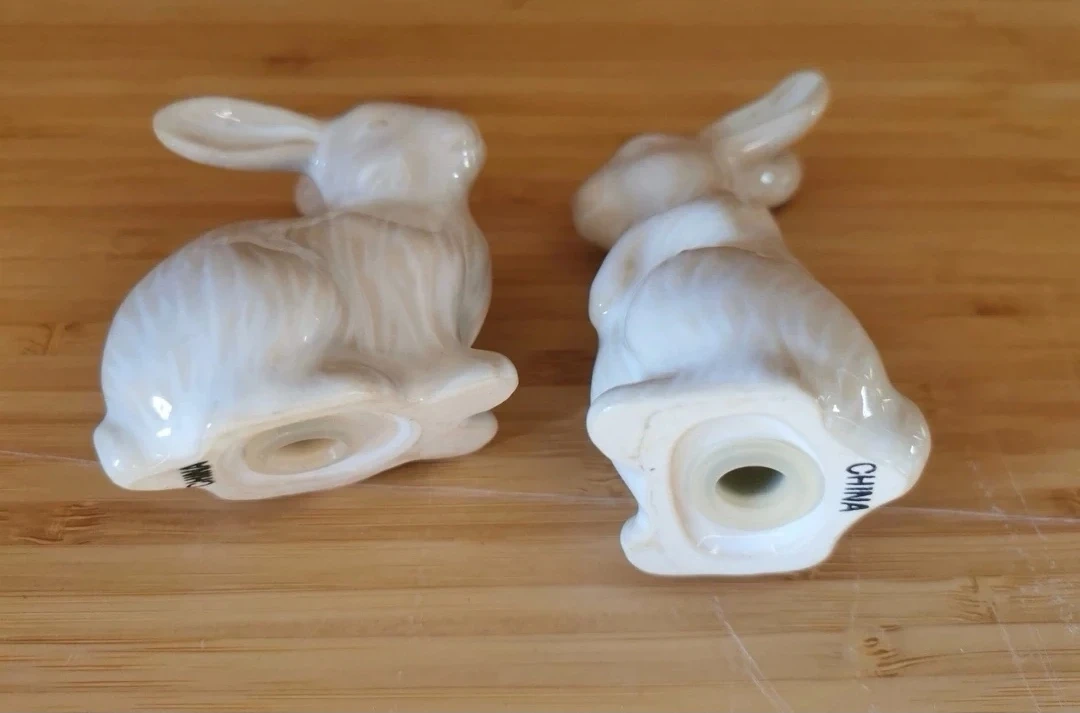 Beautiful Vintage Porcelain Bunny Salt and Pepper Shakers