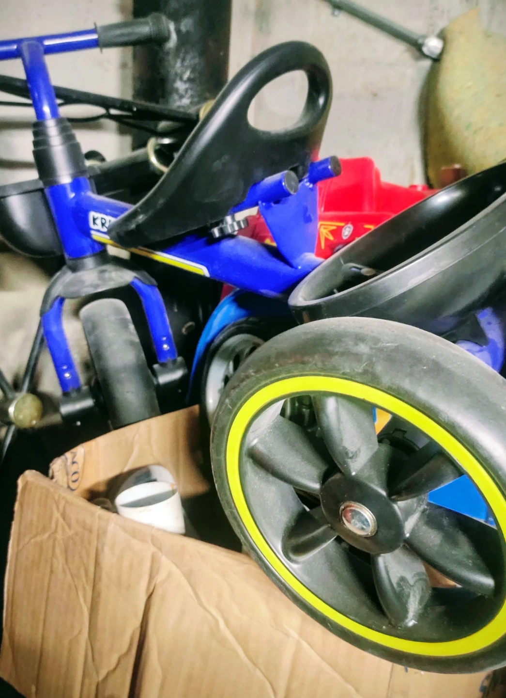 This KIDDO tricycle is blue with yellow accents and black wheels. It's designed for toddlers with a comfortable seat and storage baskets. Great for outdoor fun!