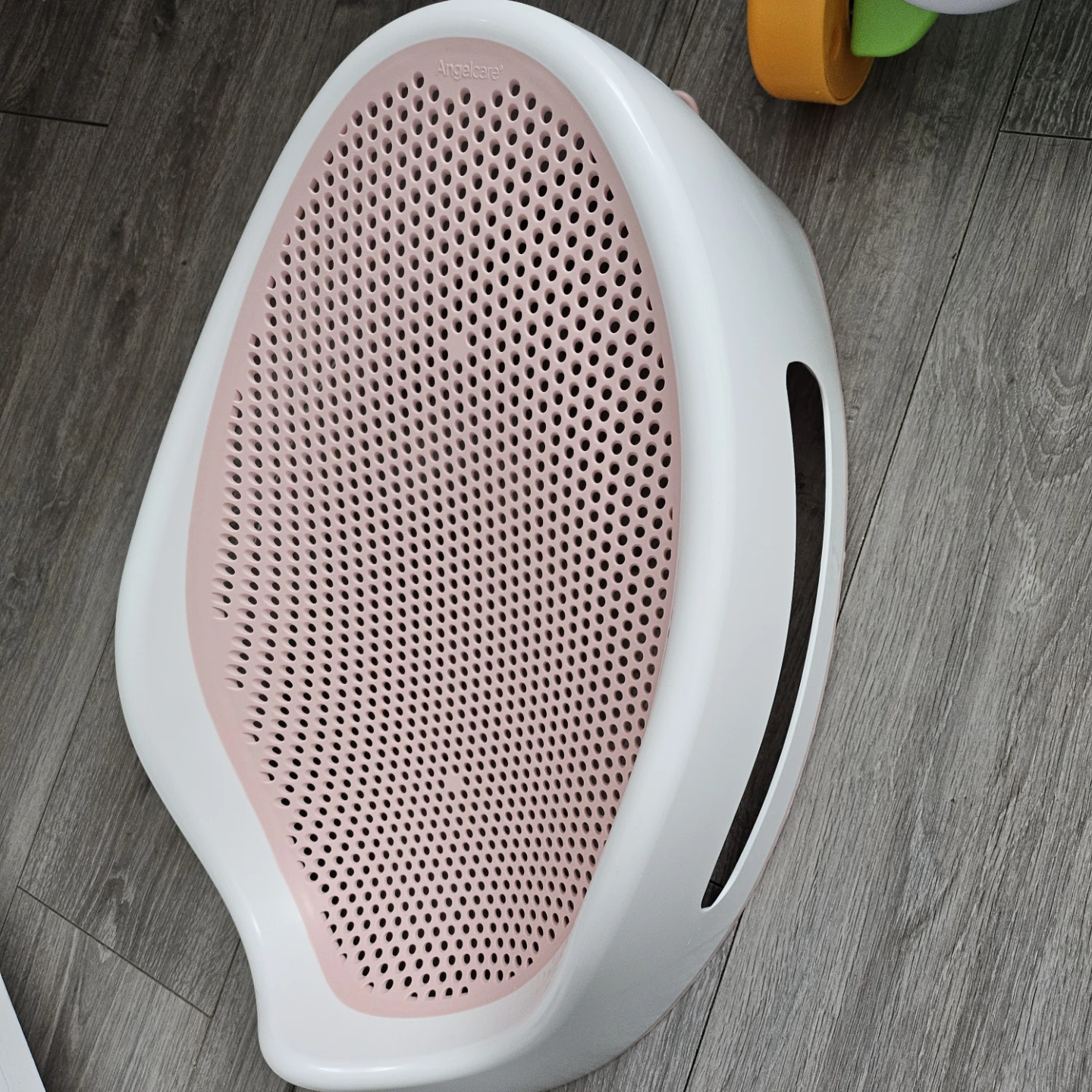 Selling a baby bath support from Angelcare. It's in great condition and ready to use for your little one! It's pink and white, and provides a safe and comfortable way to bathe your baby. Very easy to clean and store as well