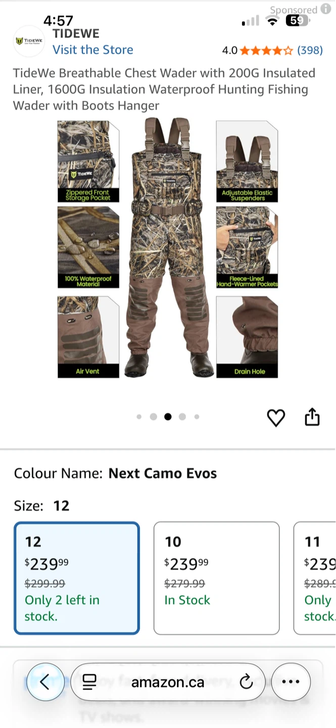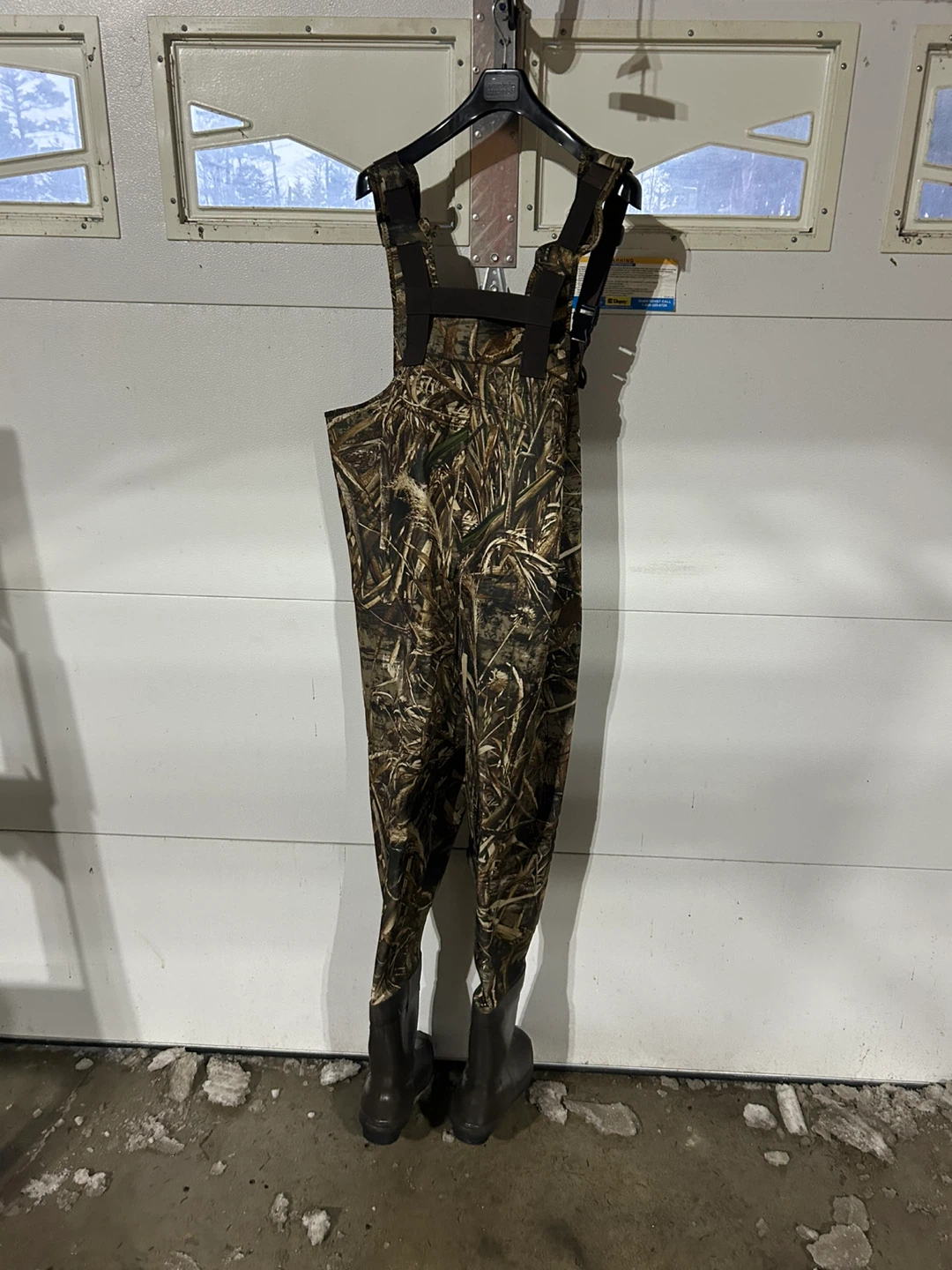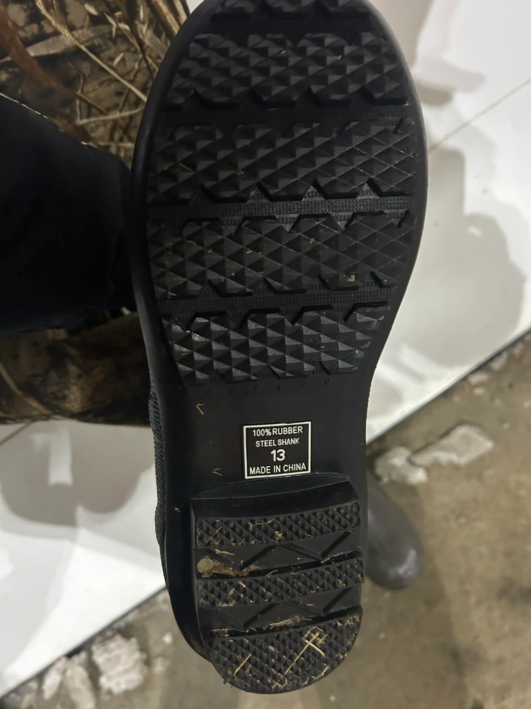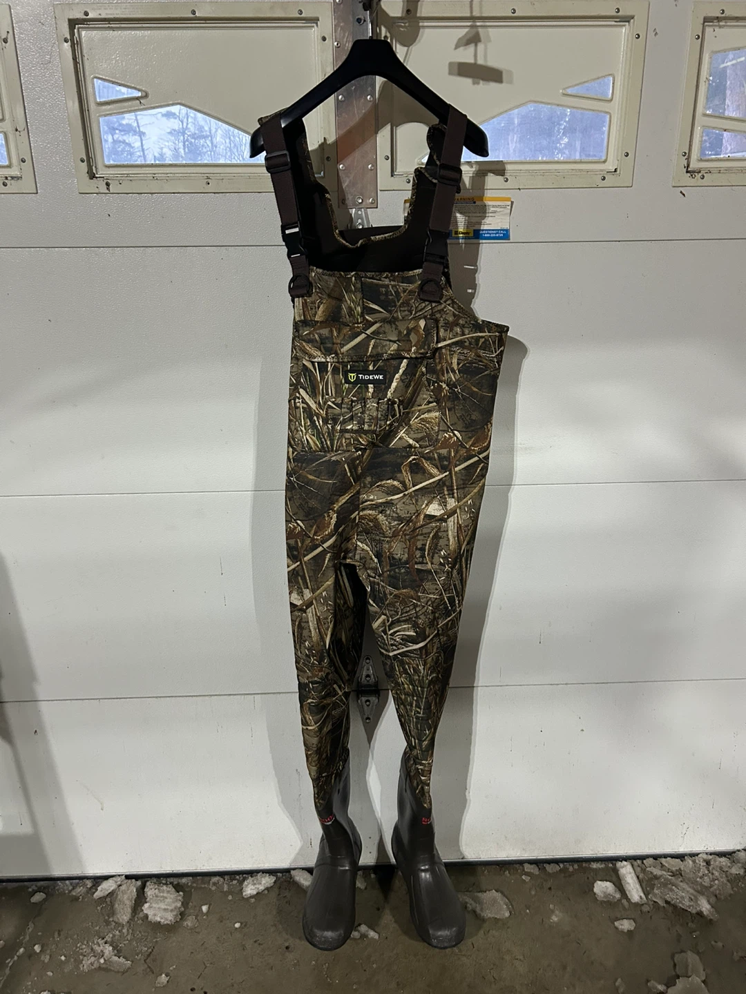 Selling a pair of Tidewe hunting waders in a camo pattern. These are size 13 and feature 800g 3M Thinsulate insulation to keep you warm and dry. The boots are made of 100% rubber with a steel shank.