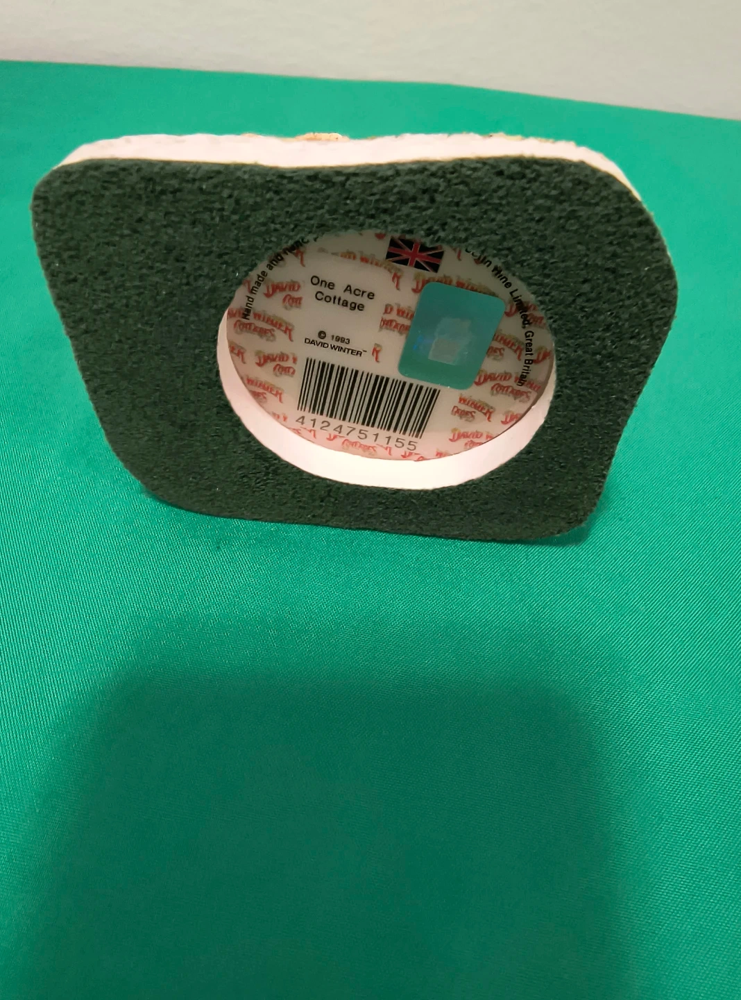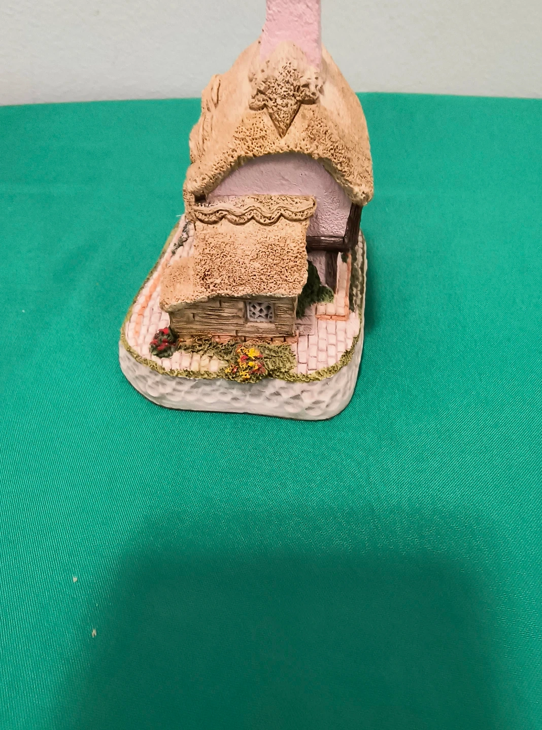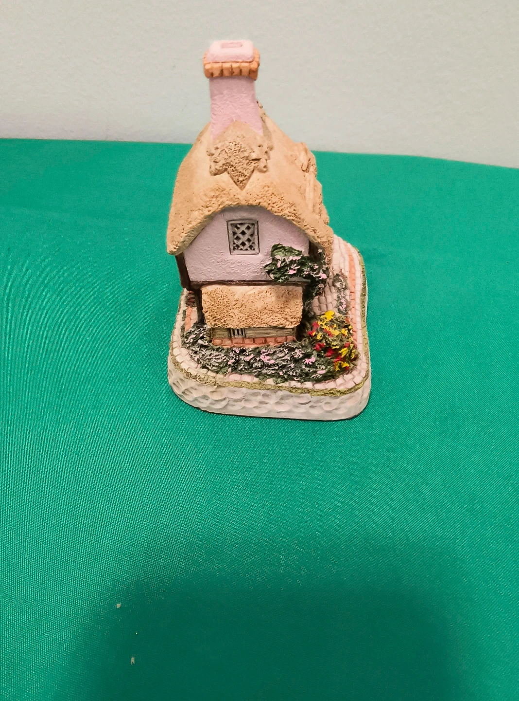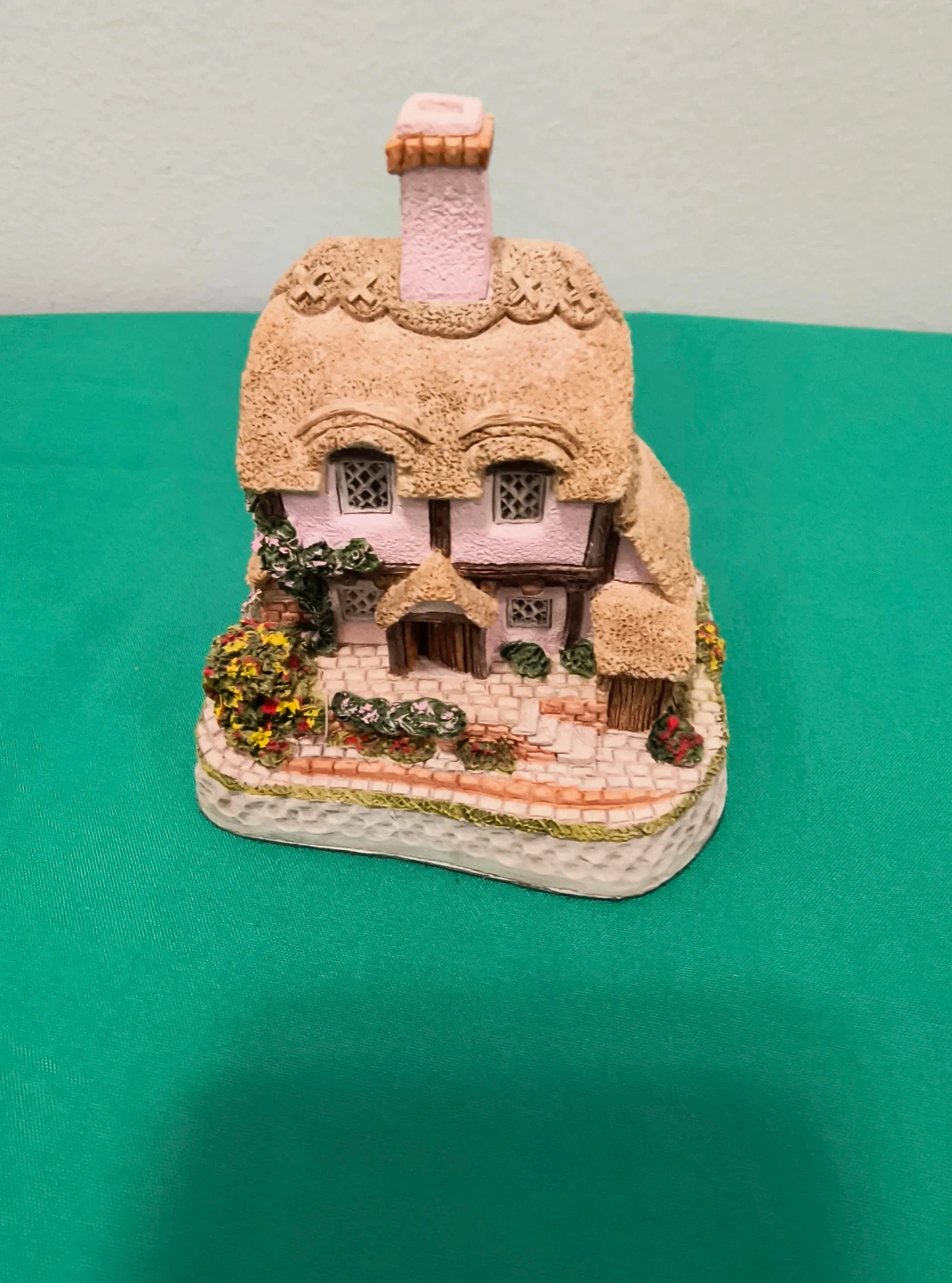This is a David Winter "One Acre Cottage" figurine. It's detailed with a thatched roof and stone pathways. This piece was created in 1993. It's a lovely collectible for display.