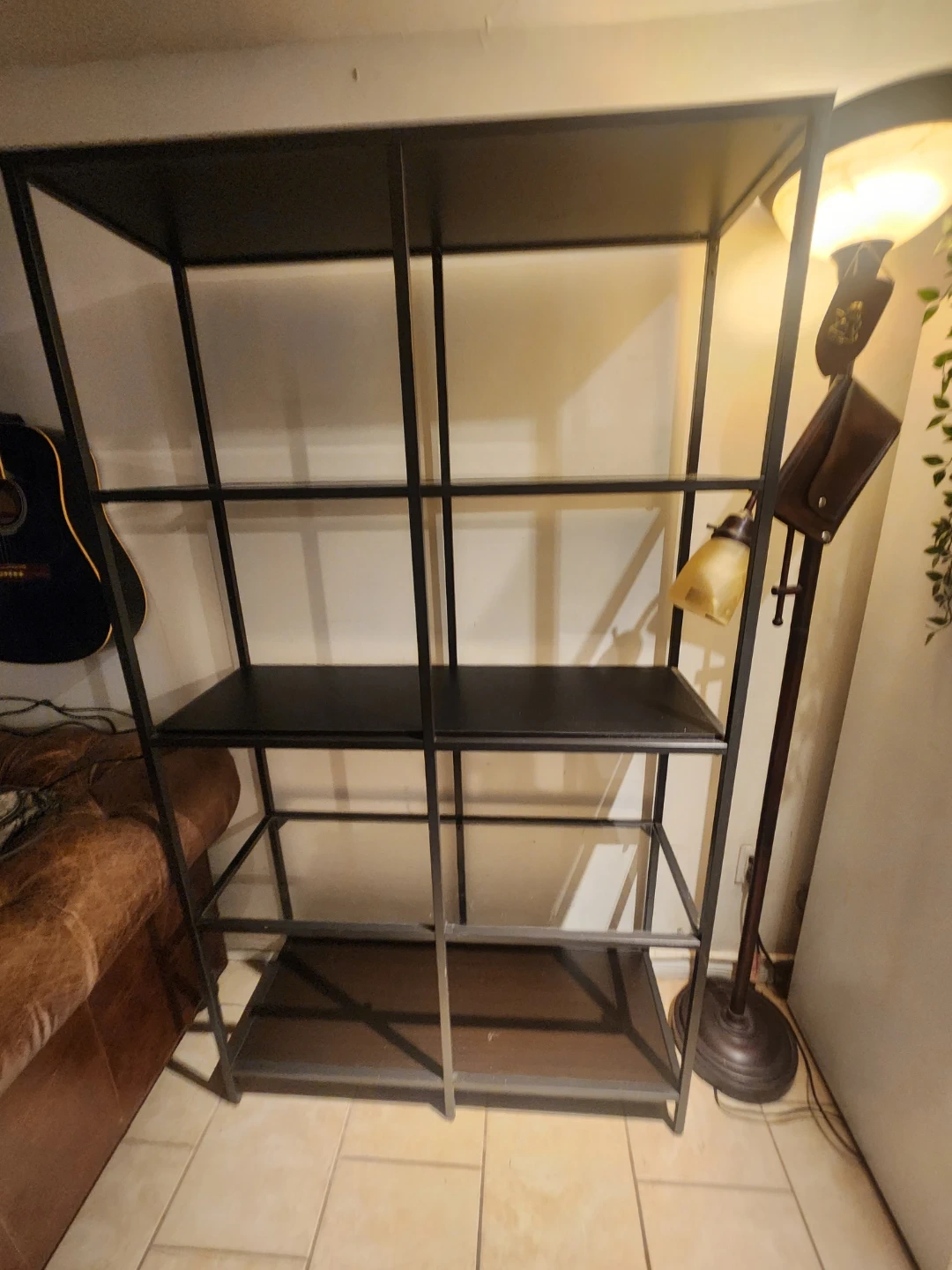 This is an IKEA VITTSJÖ shelving unit, ideal for adding storage and display space to any room. It's sturdy and stylish, perfect for books, plants, or decorative items.