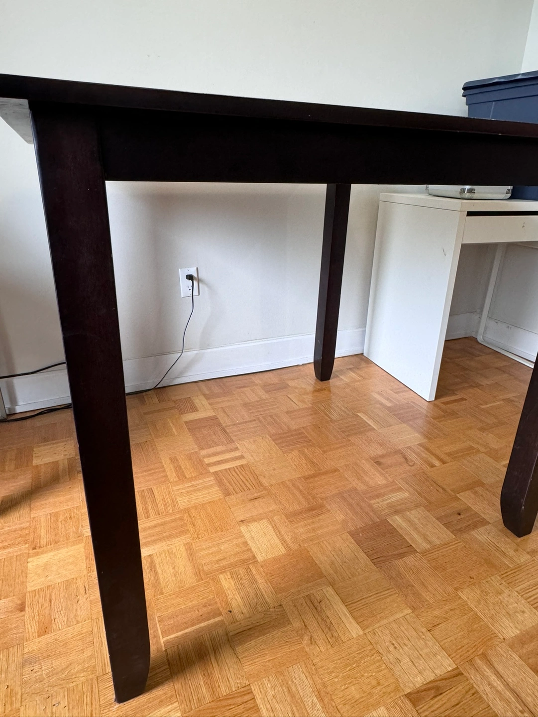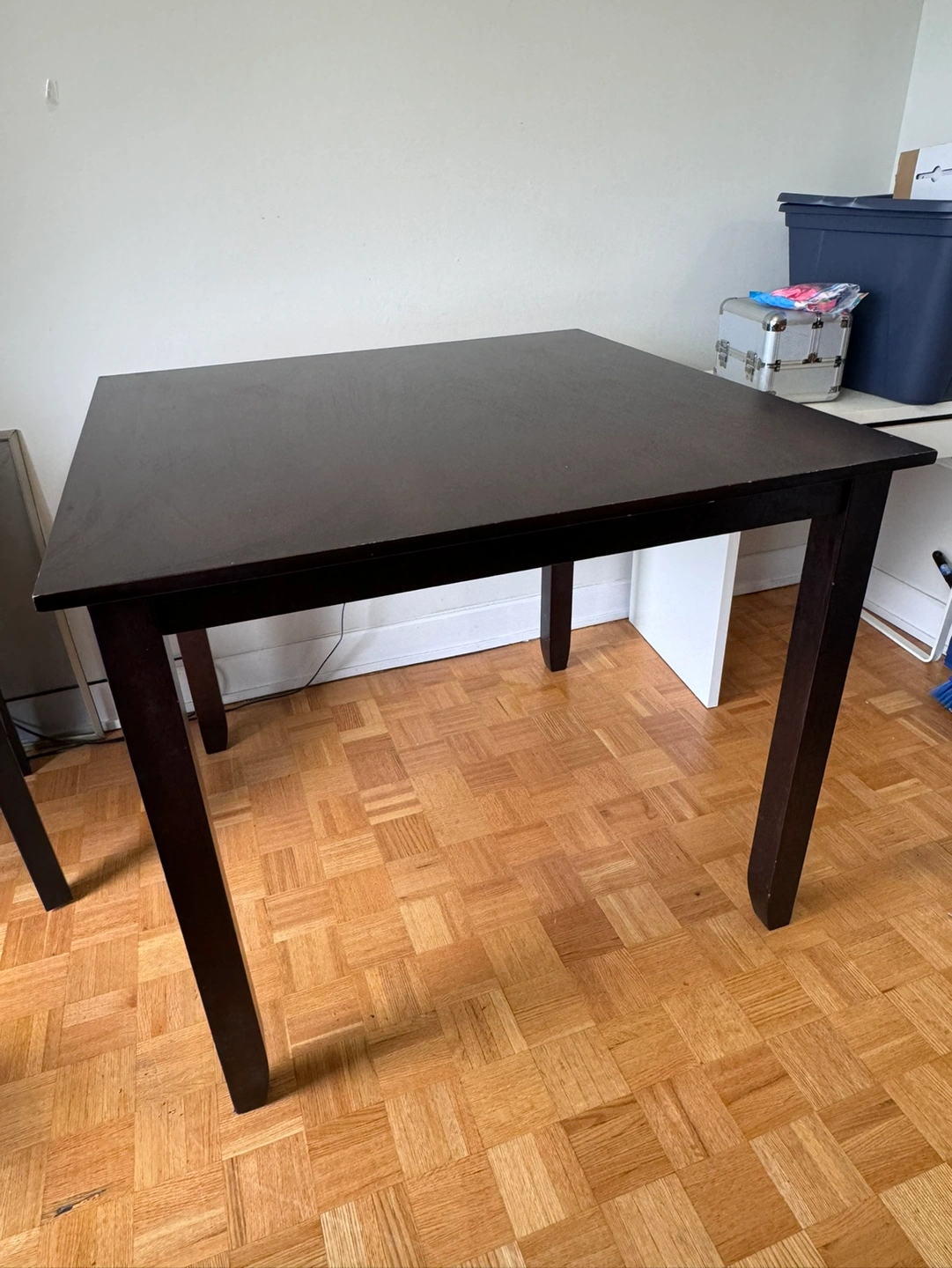 dark brown wooden high table (no chairs).