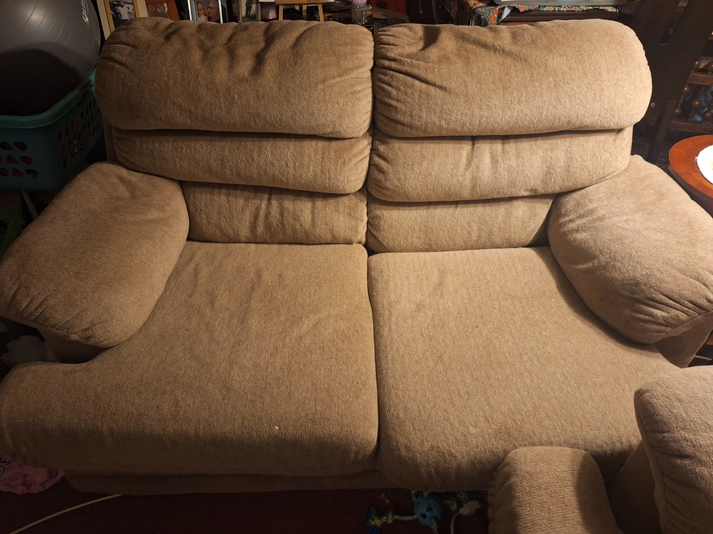 These comfortable sofas offers ample seating for up to five people. It's upholstered in a textured fabric that's both durable and soft to the touch and reiforcedwooden base that has lasted for decades and is still perfectly sturdy and looks great. The plush cushions provide excellent support for relaxing evenings.