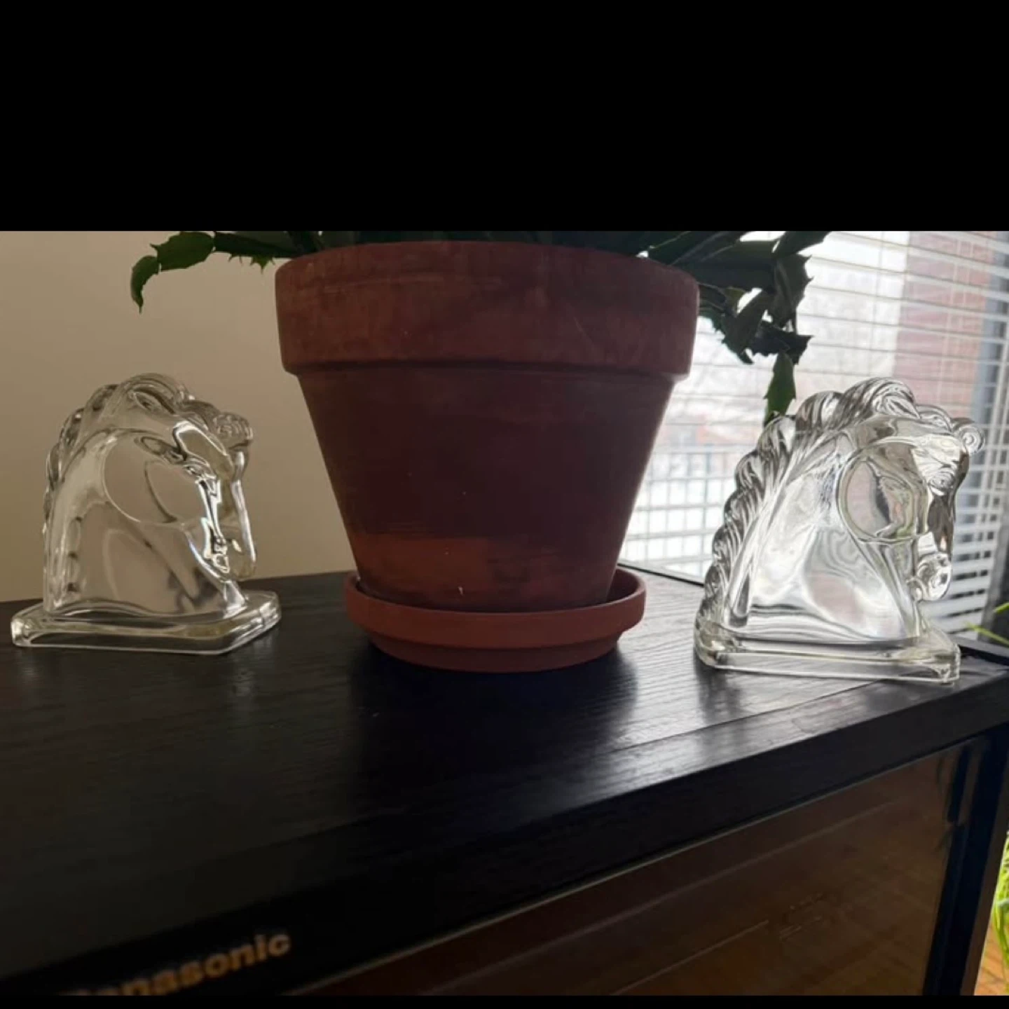 MCM Set of 2 Clear Glass Horse Head Figurines