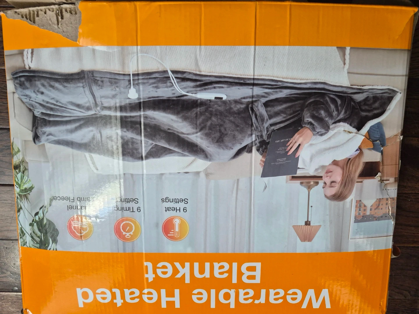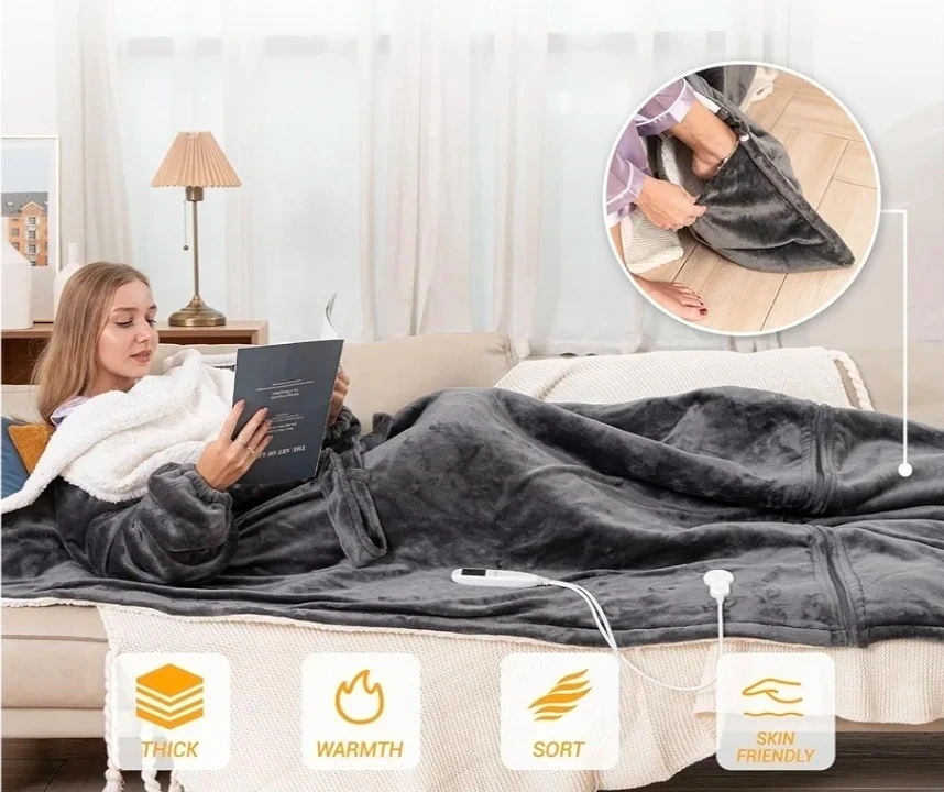 Grey Heated Blanket with Sleeves and Foot Pocket