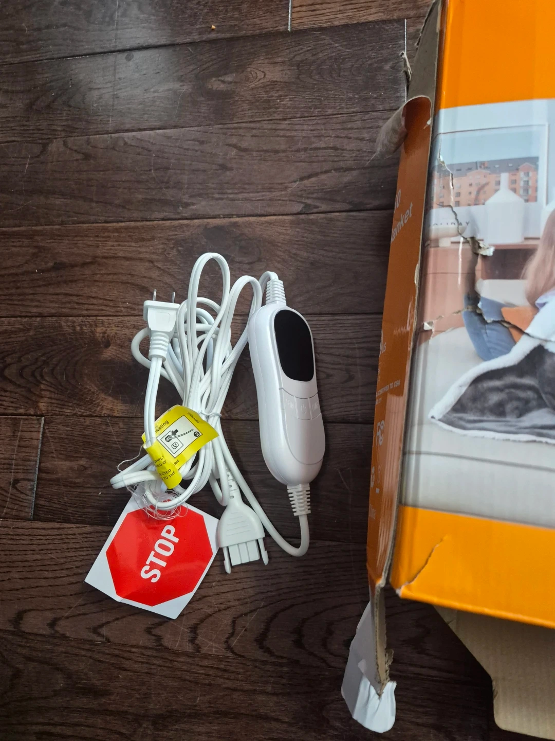 This cozy heated blanket features sleeves and a detachable foot pocket for extra warmth. It's made from soft flannel and cozy sherpa material. The blanket is designed for easy cleaning, with instructions for cold wash and tumble dry low.