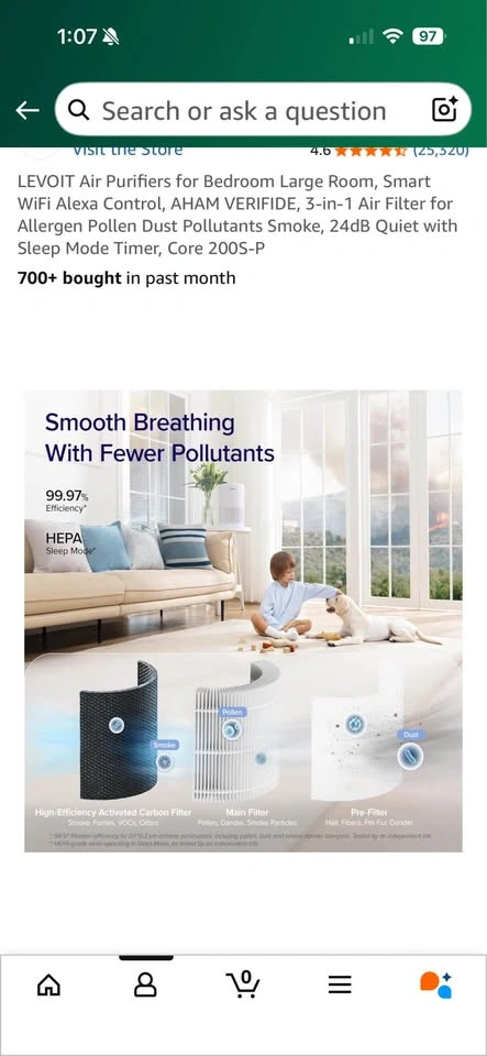 Breathe cleaner air with this LEVOIT Core 200S-P Smart Air Purifier, perfect for bedrooms or medium-sized rooms. This unit is used but in excellent condition, from a smoke-free, pet-free home.