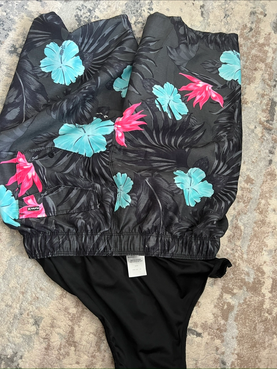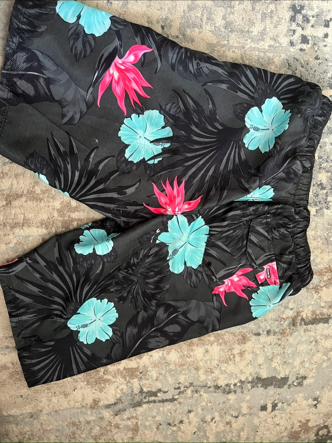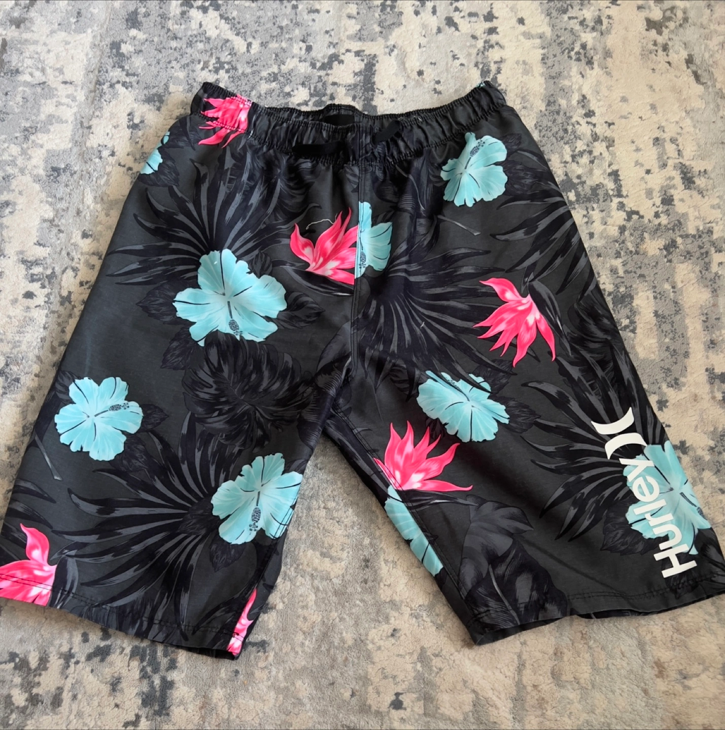 These Hurley swim shorts are perfect for the summer! They feature a cool floral pattern in shades of black, blue, and pink. The size is medium and they are in great condition. Feel free to message me with any questions!