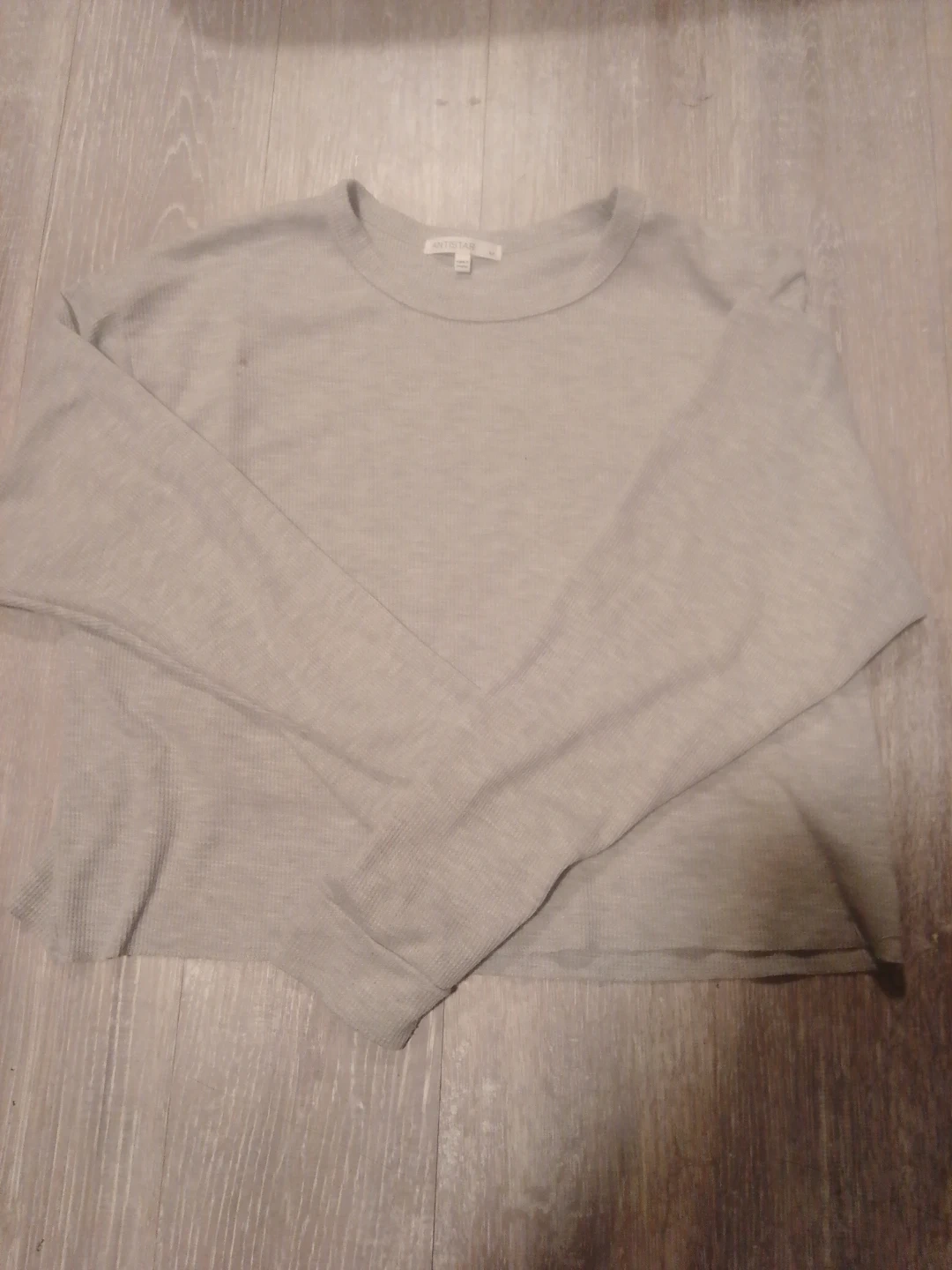 ANTISTAR grey waffle knit long sleeve top. Size medium. This top is made from a comfortable waffle knit fabric and has a classic crew neck design. It's a versatile piece that can be worn on its own or layered. 250 986 6851