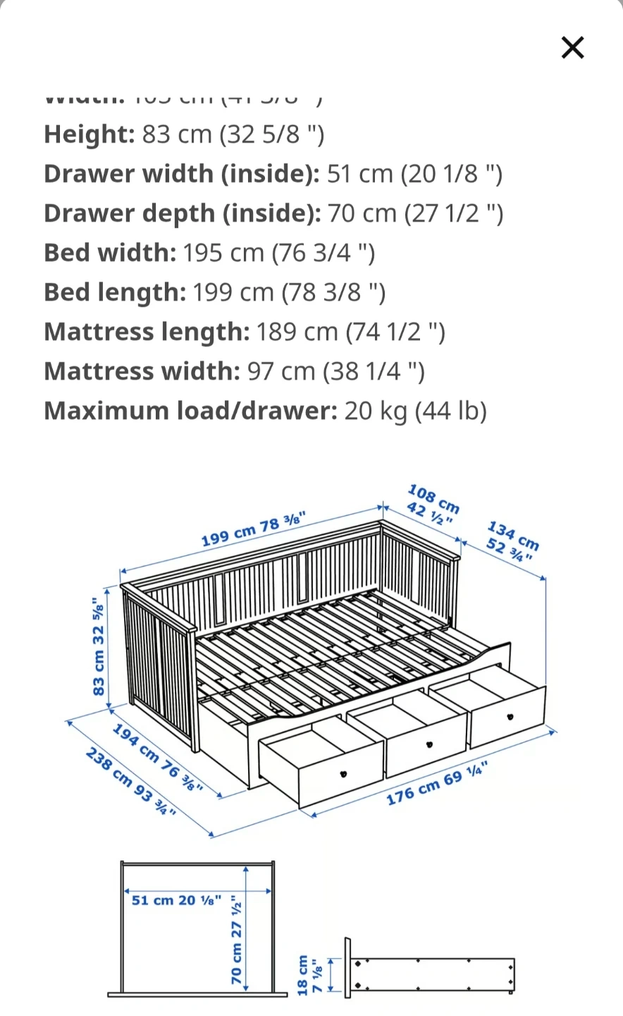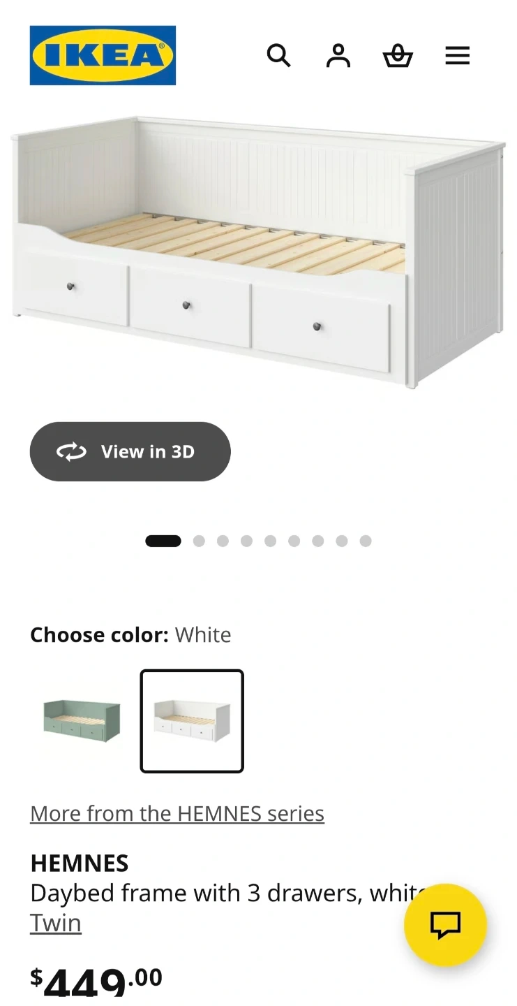 This is an IKEA HEMNES daybed frame in white with three drawers. Perfect for maximizing storage in a bedroom!