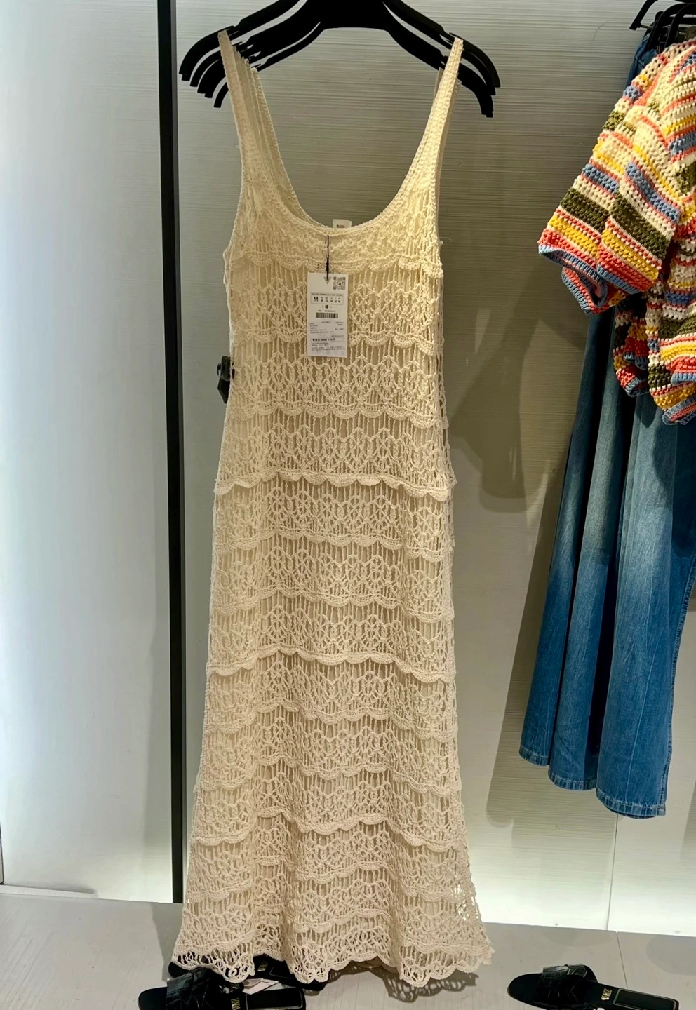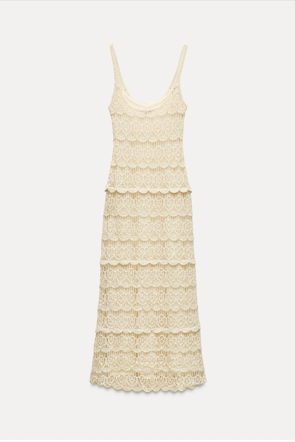Selling a Zara crochet knit dress in size M. It's a beautiful, lightweight dress perfect for summer! The intricate crochet detailing gives it a unique and stylish look. It's new.