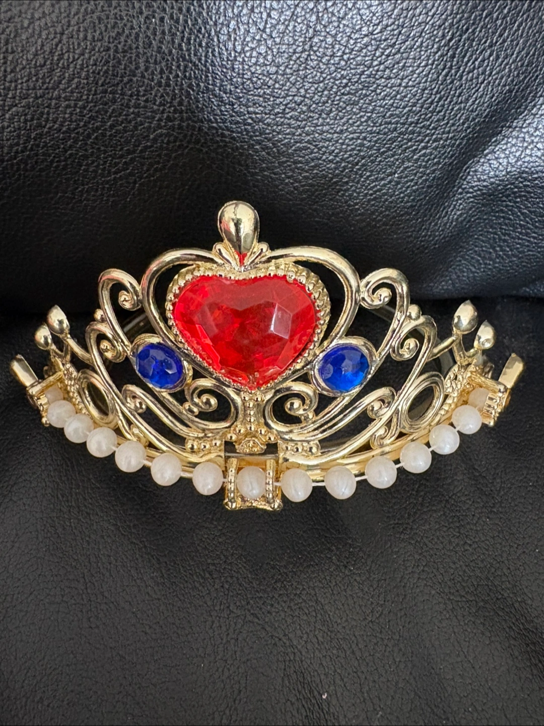 - One silver-coloured crown with a butterfly design and colourful jewels.