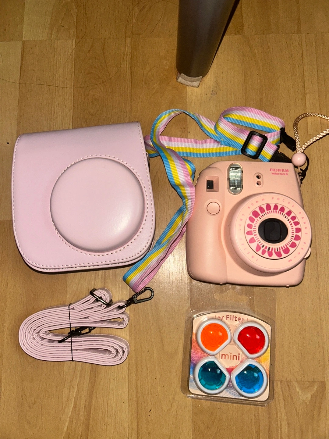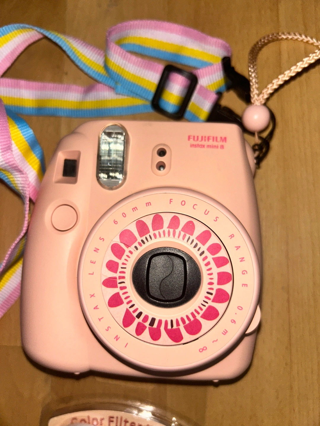 196Selling a cute Fujifilm Instax Mini 8 instant camera in pink! It comes with a colourful strap, a matching pink case, and a set of mini colour filters. Perfect for capturing fun memories on the go