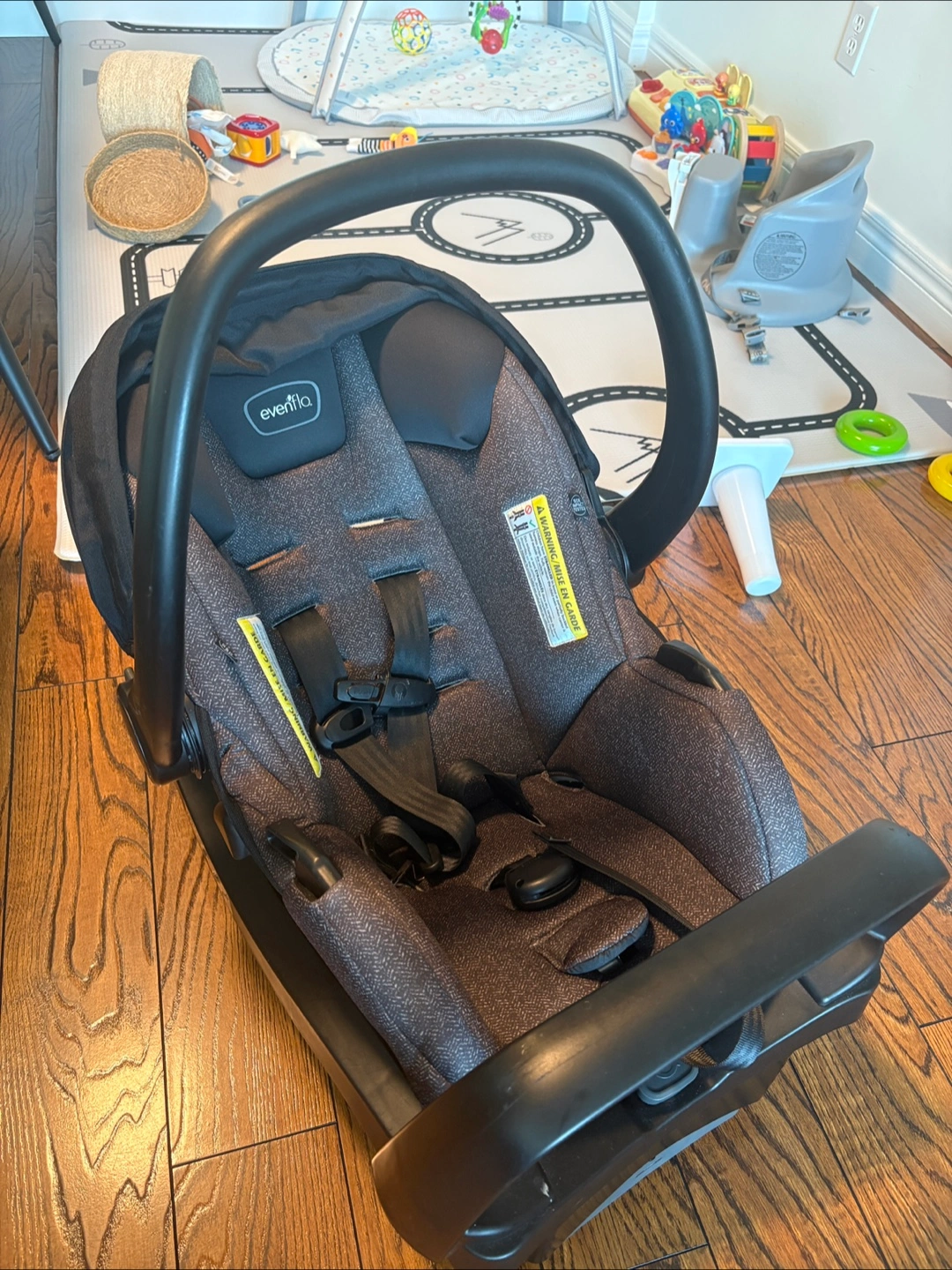 763Selling an Evenflo infant car seat in great condition. Compatible with Evenflo strollers. Manufactured in 2022. The infant seats’ lifespan is 7-10 years, so it has a few years left. Petfree and smoke free home; not involved in any accidents. Includes base and sunshade. (Everything can be taken off and washed).