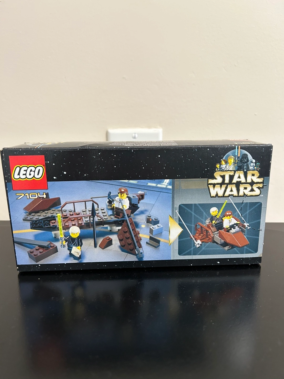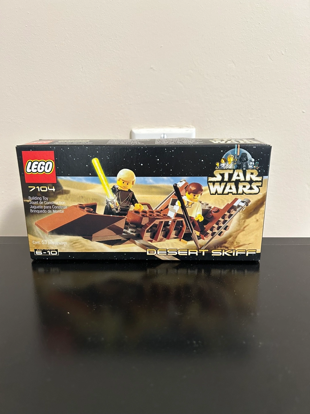 Selling a LEGO Star Wars Desert Skiff set, number 7104! It's a fun building toy for ages 6-10. Great for any Star Wars fan or LEGO enthusiast. Brand new, never opened. 53 pcs. From 2000.