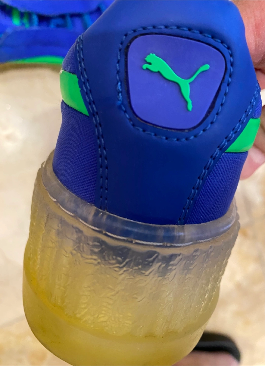Selling a pair of Puma Rihanna Cleated Creeper Suede shoes in blue and green. Size is US 6.5. They are in good used condition. Perfect for adding a bit of edge to your style!