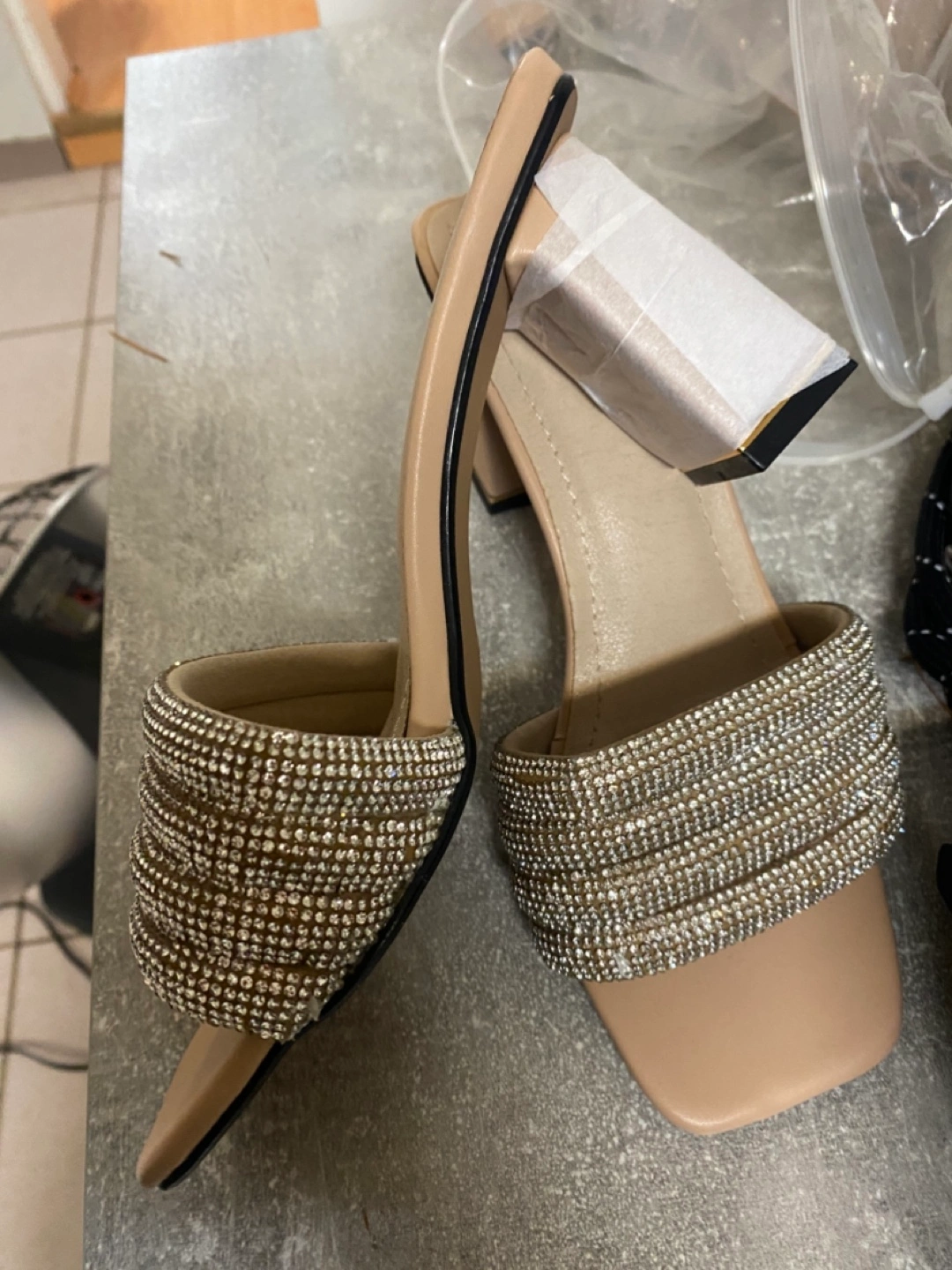 HT Shoes Rhinestone Heeled Sandals - Size 36