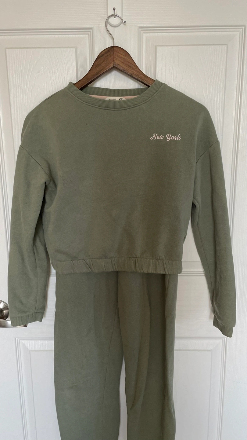 39Selling a cute H&M tracksuit for kids! It's a nice olive green colour and size 12-13 (fits women’s size XS). Perfect for keeping cozy and looking stylish.