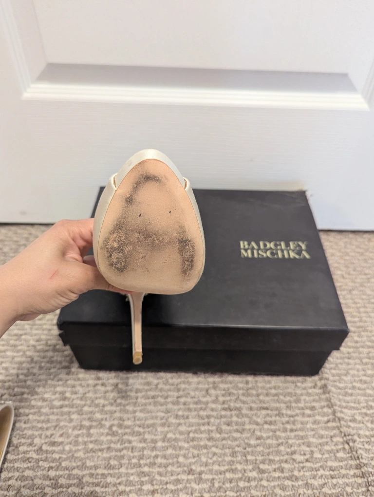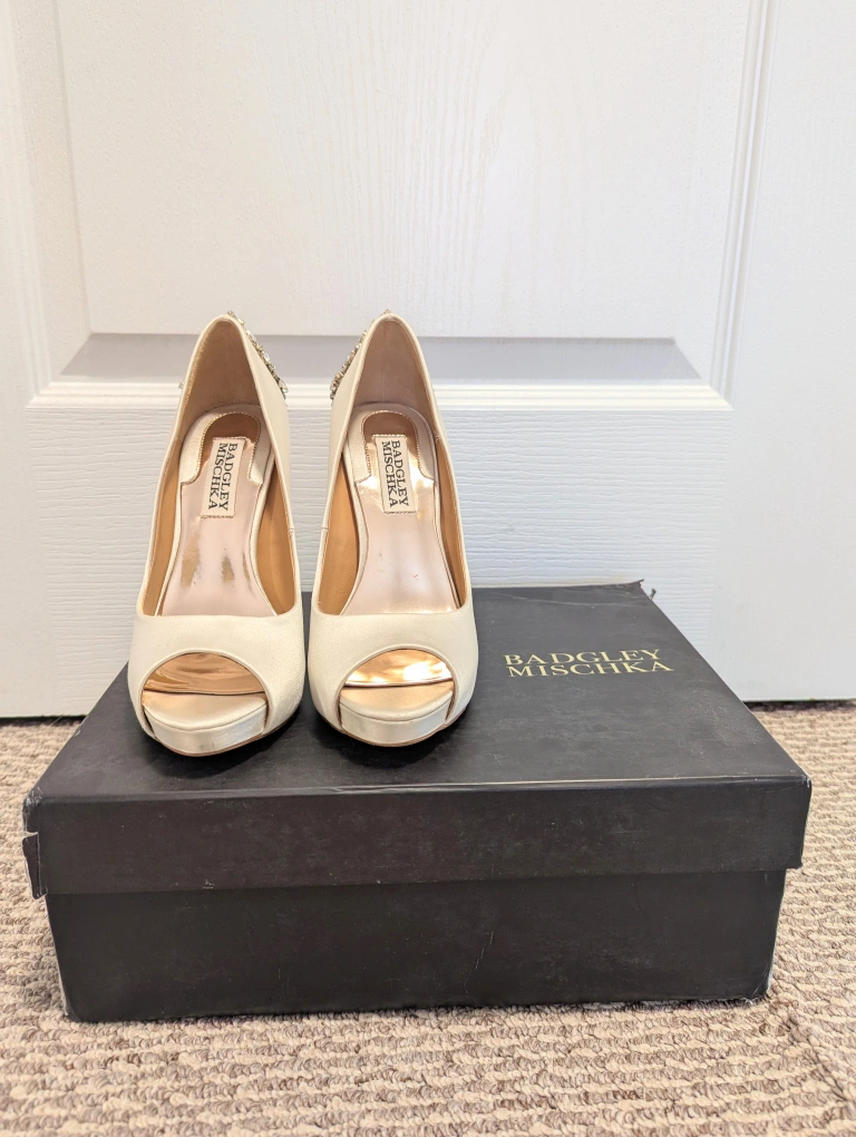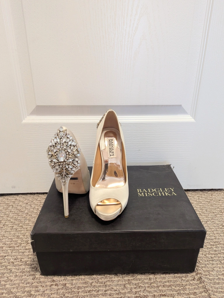 Selling Mischka Bradley Kiara women shoes. Worn once for wedding ceremony. Size 5 in Ivory. Heel height is 4 3/4 and platform is 1inch. Box is a little bit ripped in the corner, that's how it came when I received it. But shoes is great and in good condition