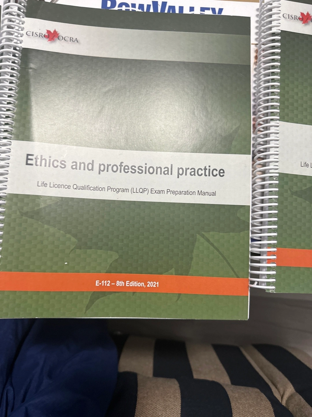 Buy & SellEthics and Professional Practice LLQP Exam Prep ManualEthics and Professional Practice LLQP Exam Prep Manual$24Selling the Ethics and Professional Practice Life Licence Qualification Program (LLQP) Exam Preparation Manual, E-112 - 8th Edition, 2021ConditionNewWHERE TO MEETMarbank drView MapSELLERverifiedJackiRadisson Heights831 review0 chats·0 favorites·4 views