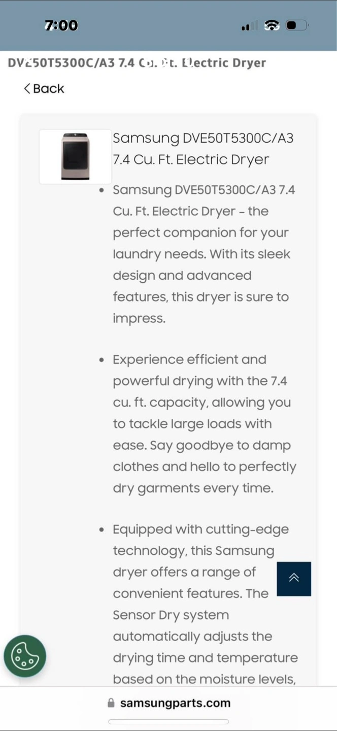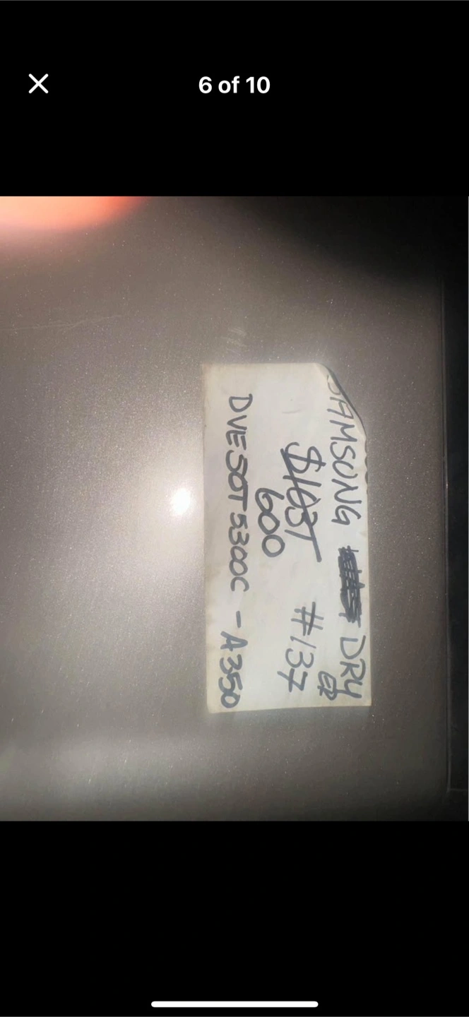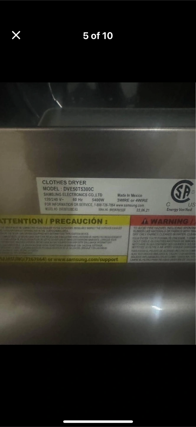 Selling a Samsung clothes dryer in stainless steel. Model number is DVE50T5300C. .