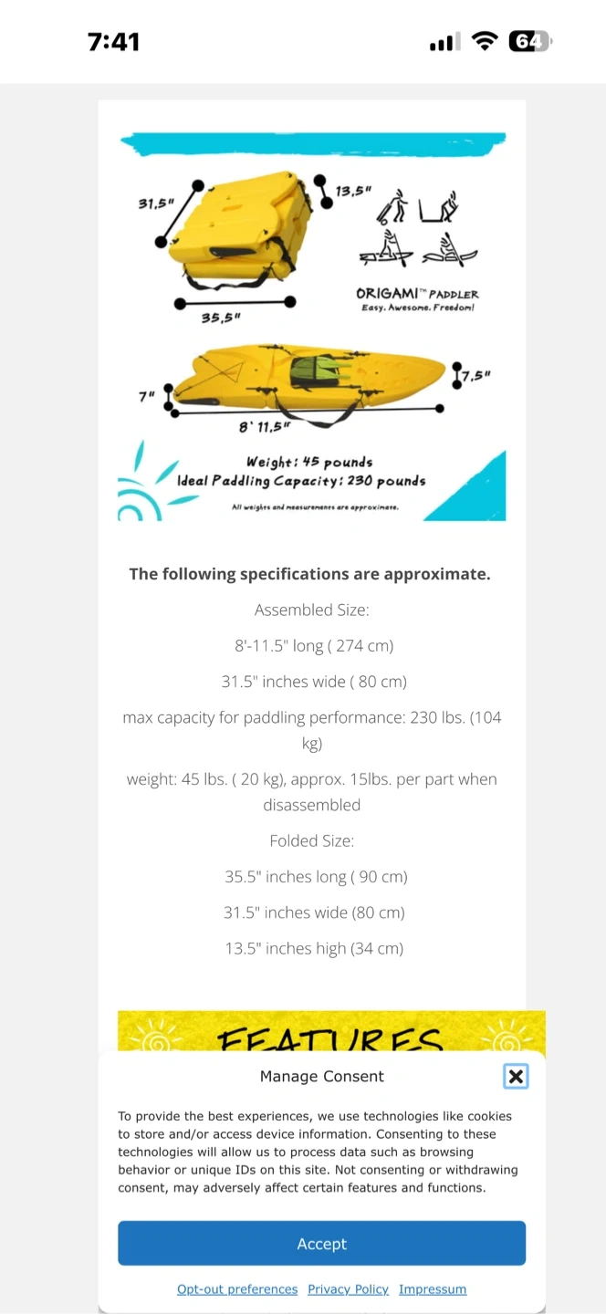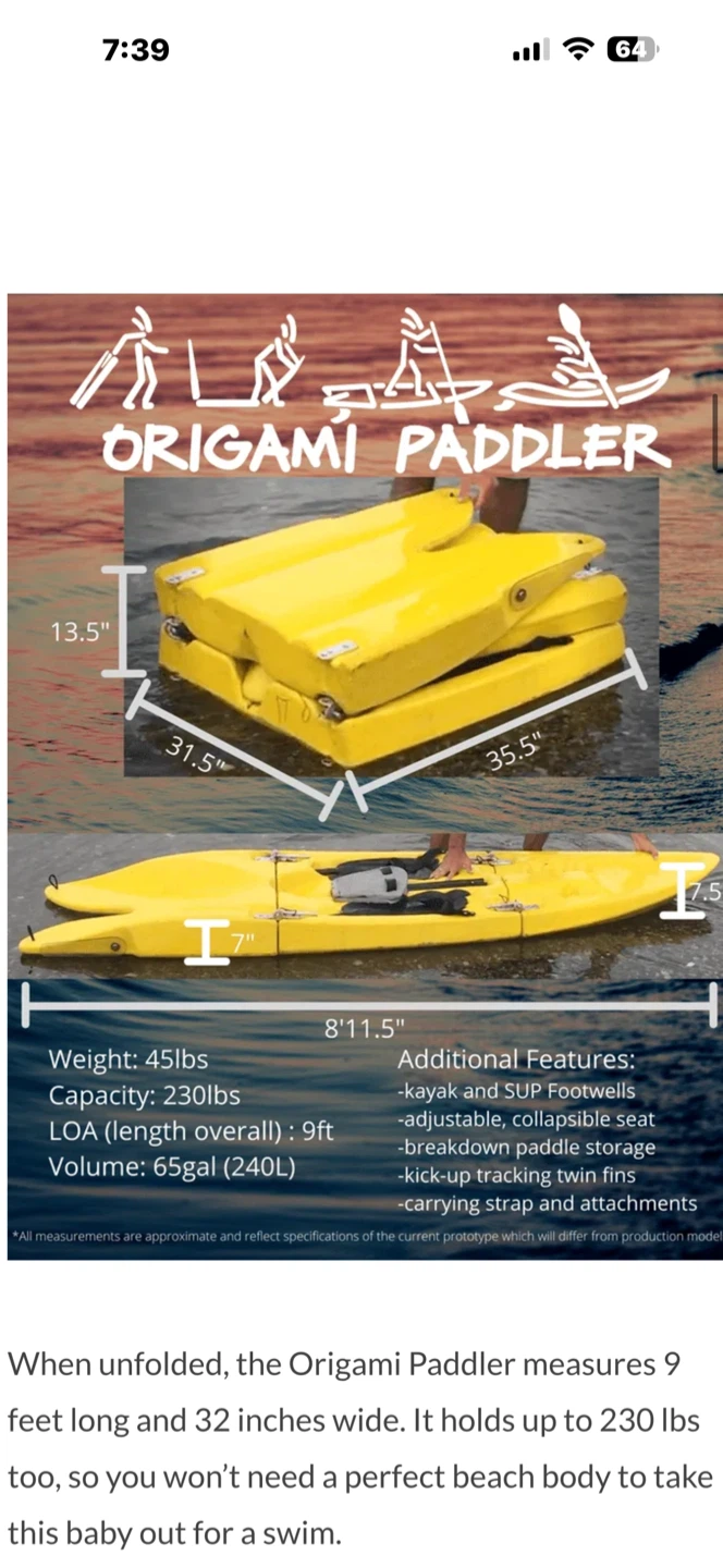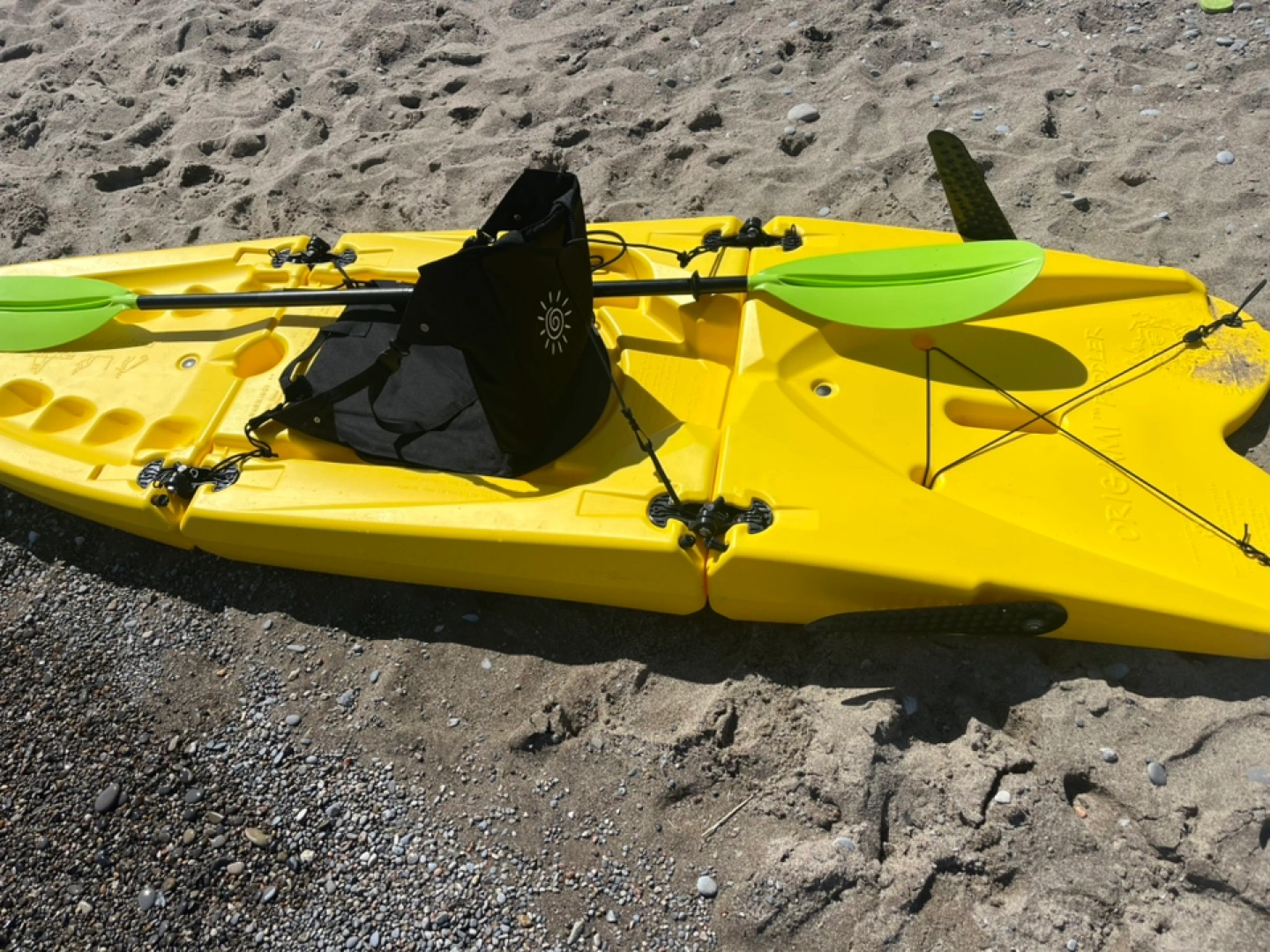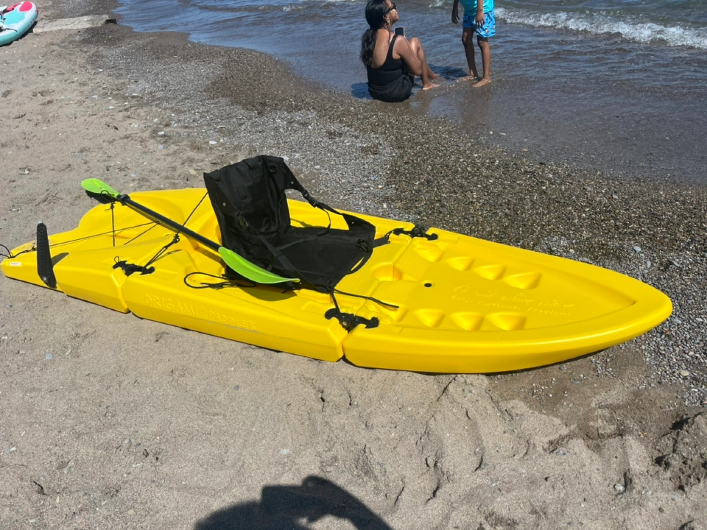 Selling a bright yellow Origami Paddler folding kayak! It's in great shape and ready for some fun on the water. This kayak is super convenient because it folds up for easy storage and transport. Perfect for anyone with limited space who still wants to enjoy kayaking!