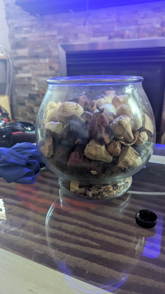 A decorative bowl filled with potpourri. It's perfect for adding a touch of fragrance and visual interest to any room in your home