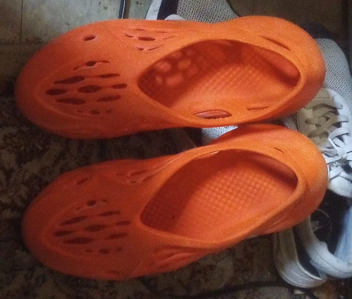 Selling a pair of orange foam runner style clogs. They are super comfy and great for wearing around the house or running errands. They are in 7/10 condition