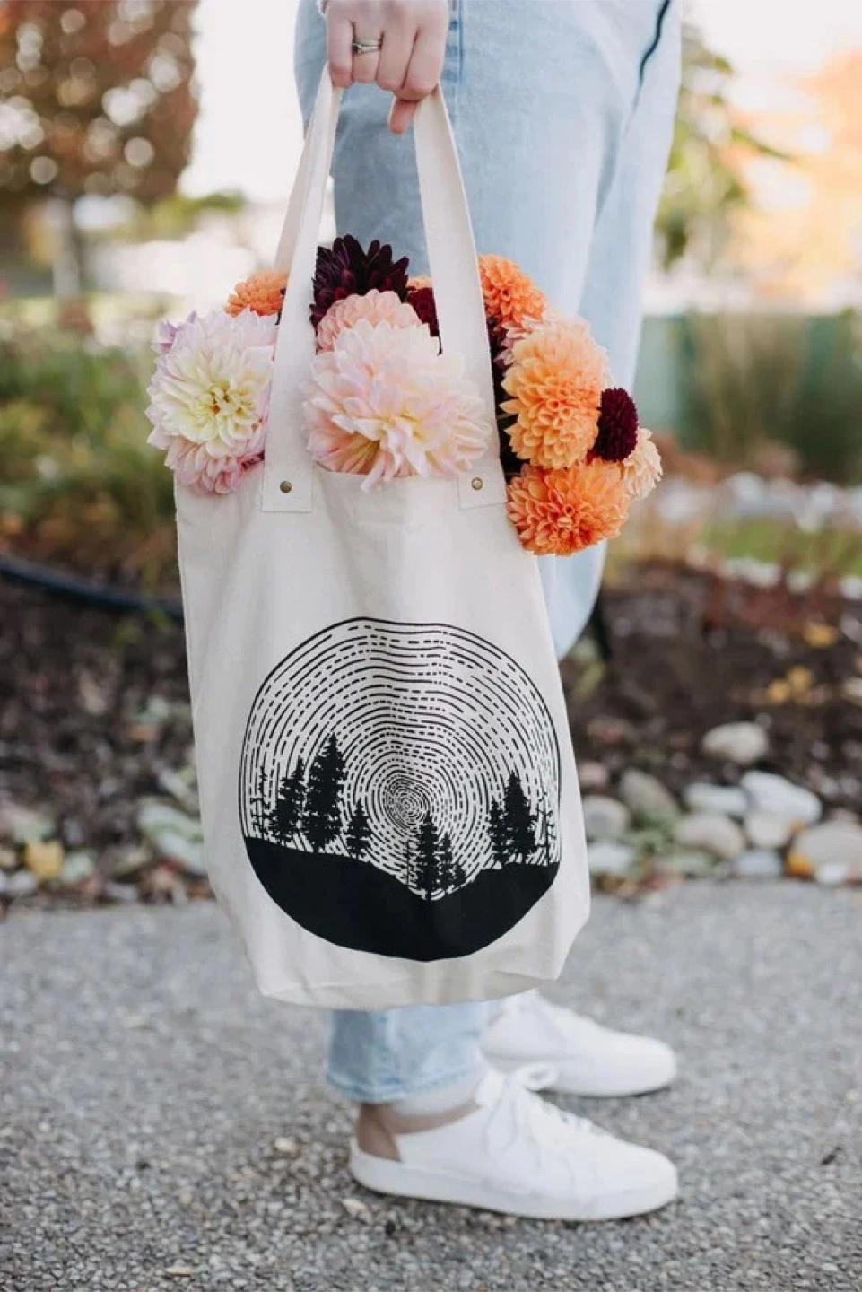 75Designed & handprinted by Your Green Kitchen Product details: ▫️Made from Medium weight Organic cotton canvas ▫️Handles sturdy reinforced cotton webbing ▫️Inside pocket and key chain holder ▫️Wide bottom gusset so it can stand up ▫️Size :13.5"x 15" ▫️Machine wash hang dry Check out my small business for more curated minimalist and eco-friendly home goods all handmade by different Canadian small businesses. https://themommaisland.square.site