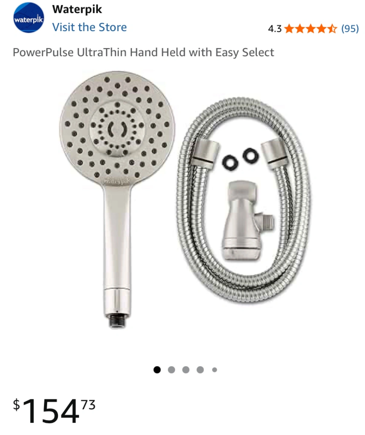 Looking to upgrade your shower experience? I'm selling a brand new Waterpik PowerPulse UltraThin Hand Held Shower Head! Originally bought for $154.73, this shower head is designed for easy selection and a great shower. It's in new condition and ready to be installed in your bathroom