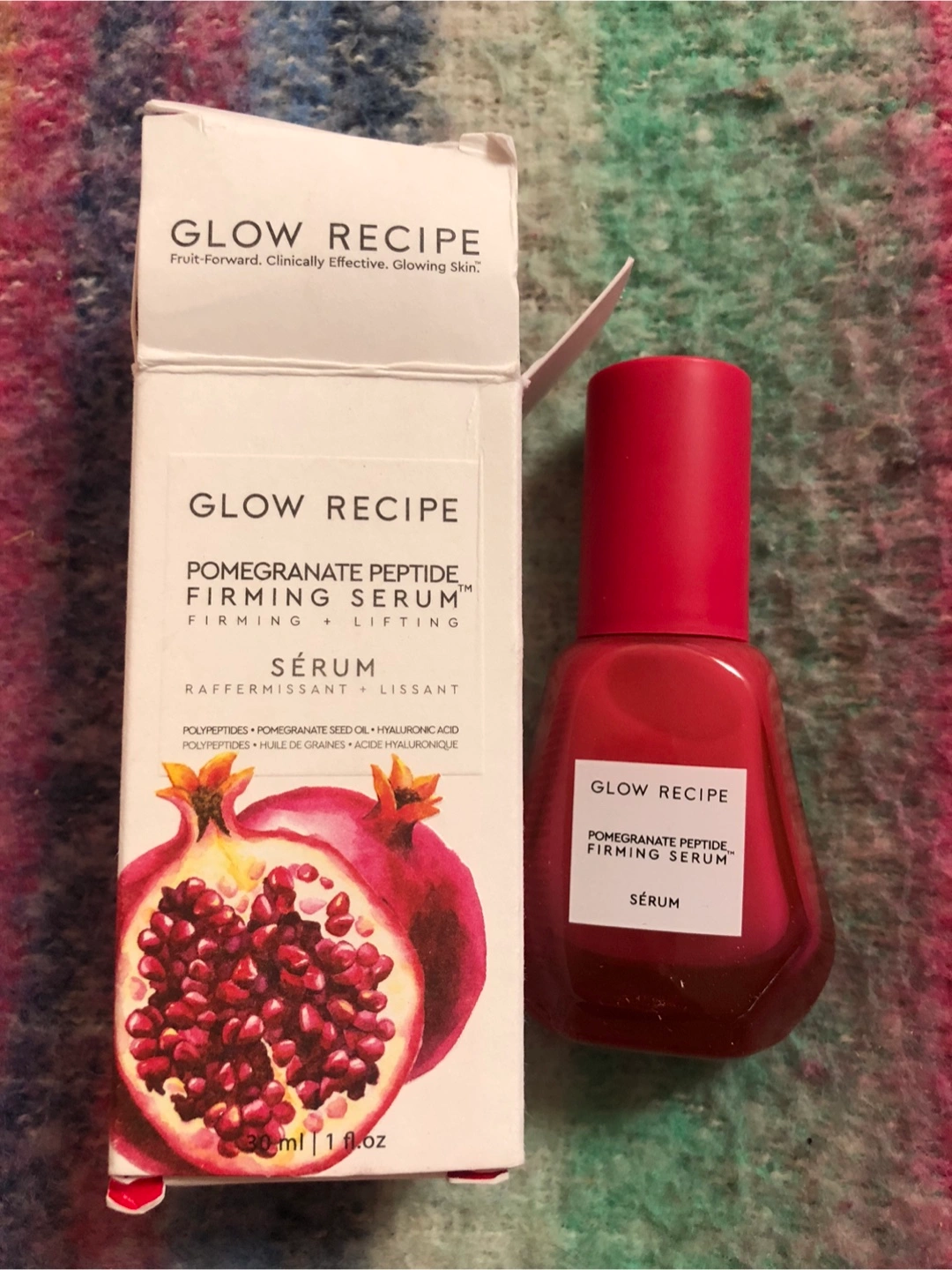 I'm selling a Glow Recipe Pomegranate Peptide Firming Serum! This serum helps to firm and lift the appearance of skin while deeply hydrating it. It contains polypeptides and pomegranate seed oil, working together for visibly smoother, lifted skin. The box is included, and it contains 30ml / 1 fl oz of product