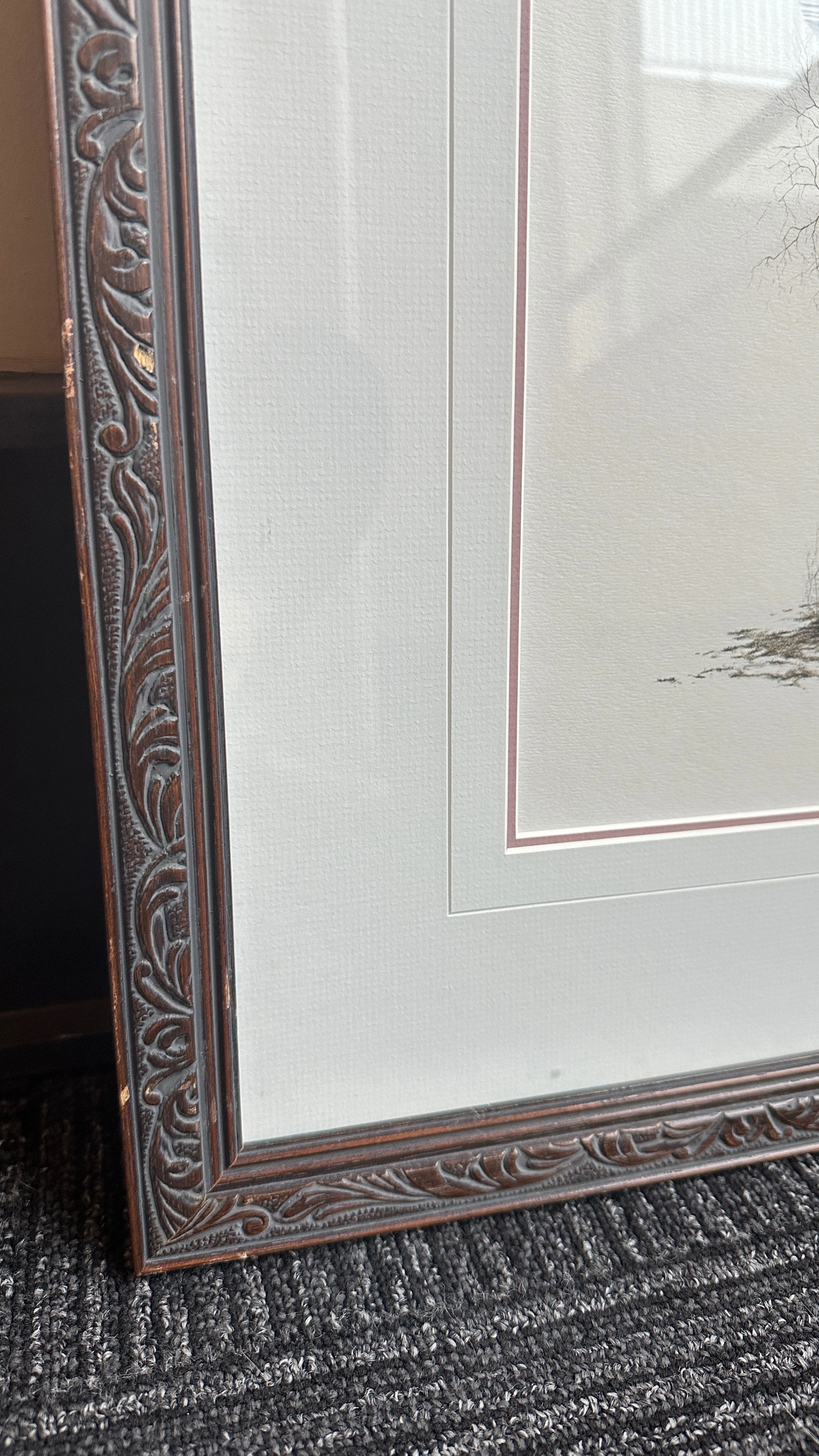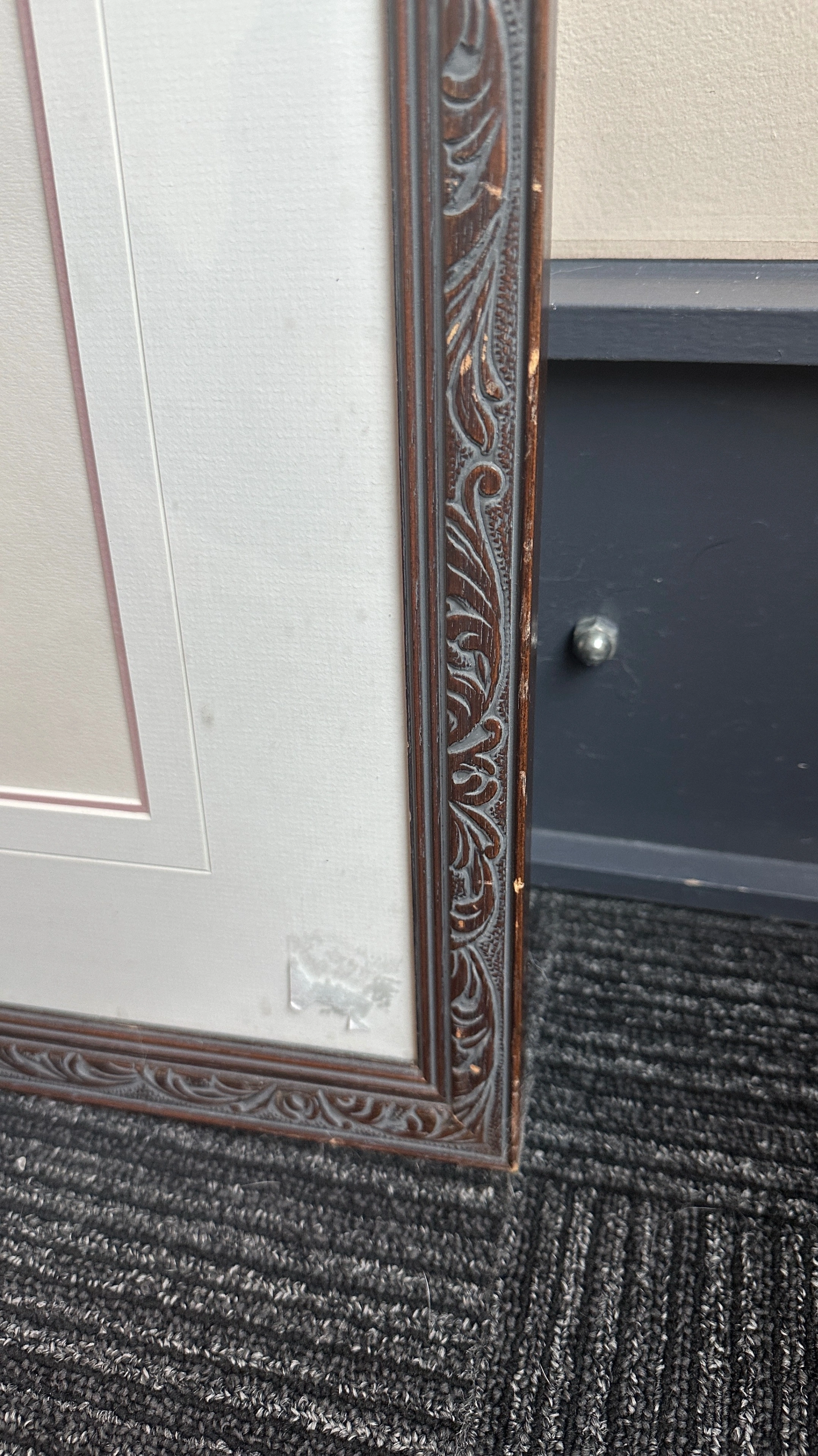 frame itself is carved wood, measures 18mm thick, 3cm wide, 65.6x57.6 overall