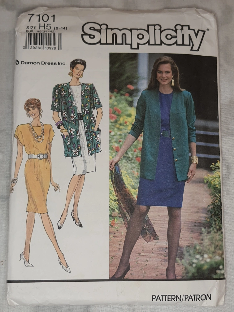 Selling a Simplicity sewing pattern, number 7101. This pattern is for misses'/miss petite dress and unlined jacket. Size H5 (6-14). Great for creating your own custom wardrobe!