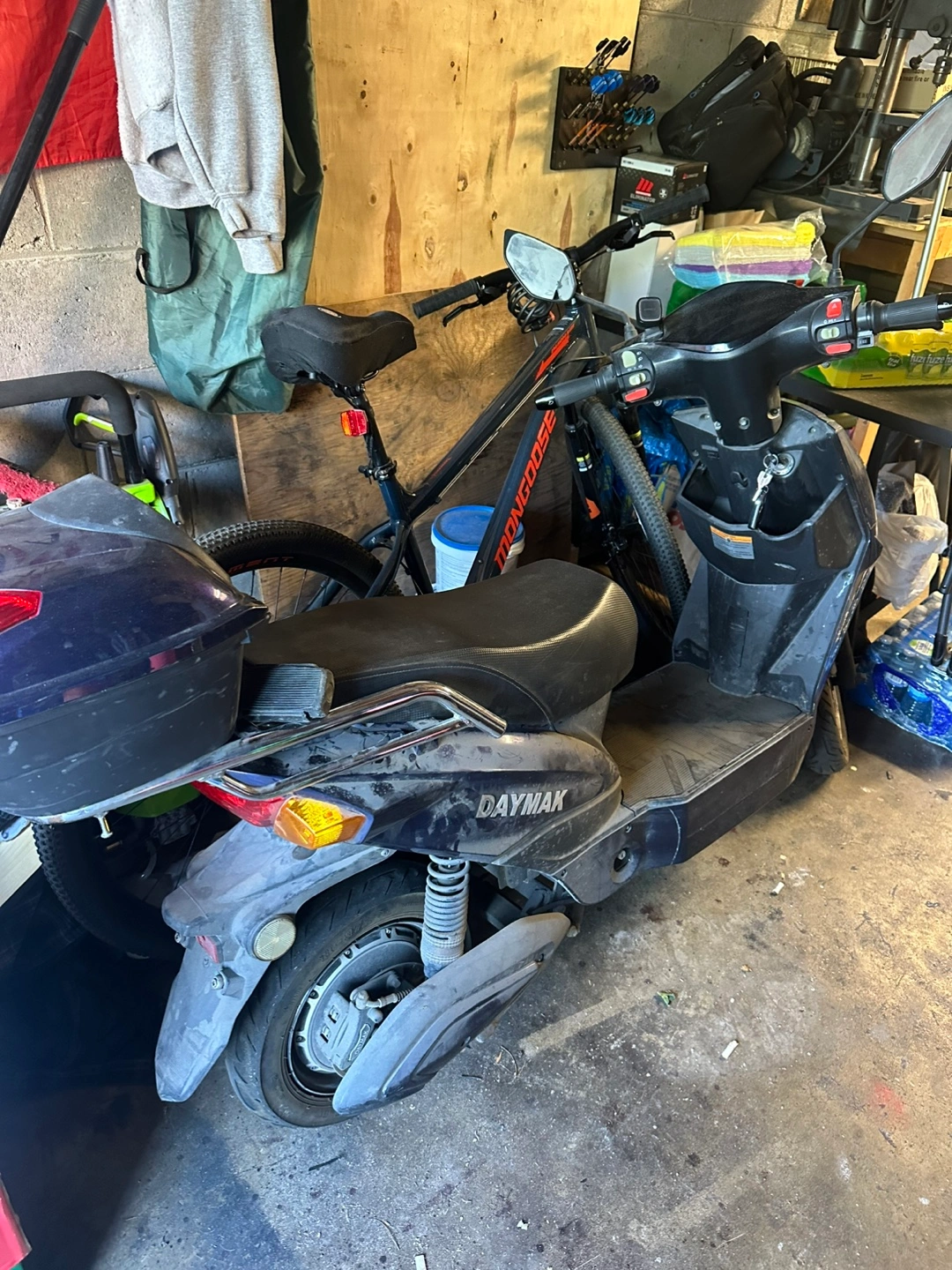 Selling a Daymak electric scooter! It's in used condition, as you can see in the photos. Great for getting around town! needs new batteries, $150
