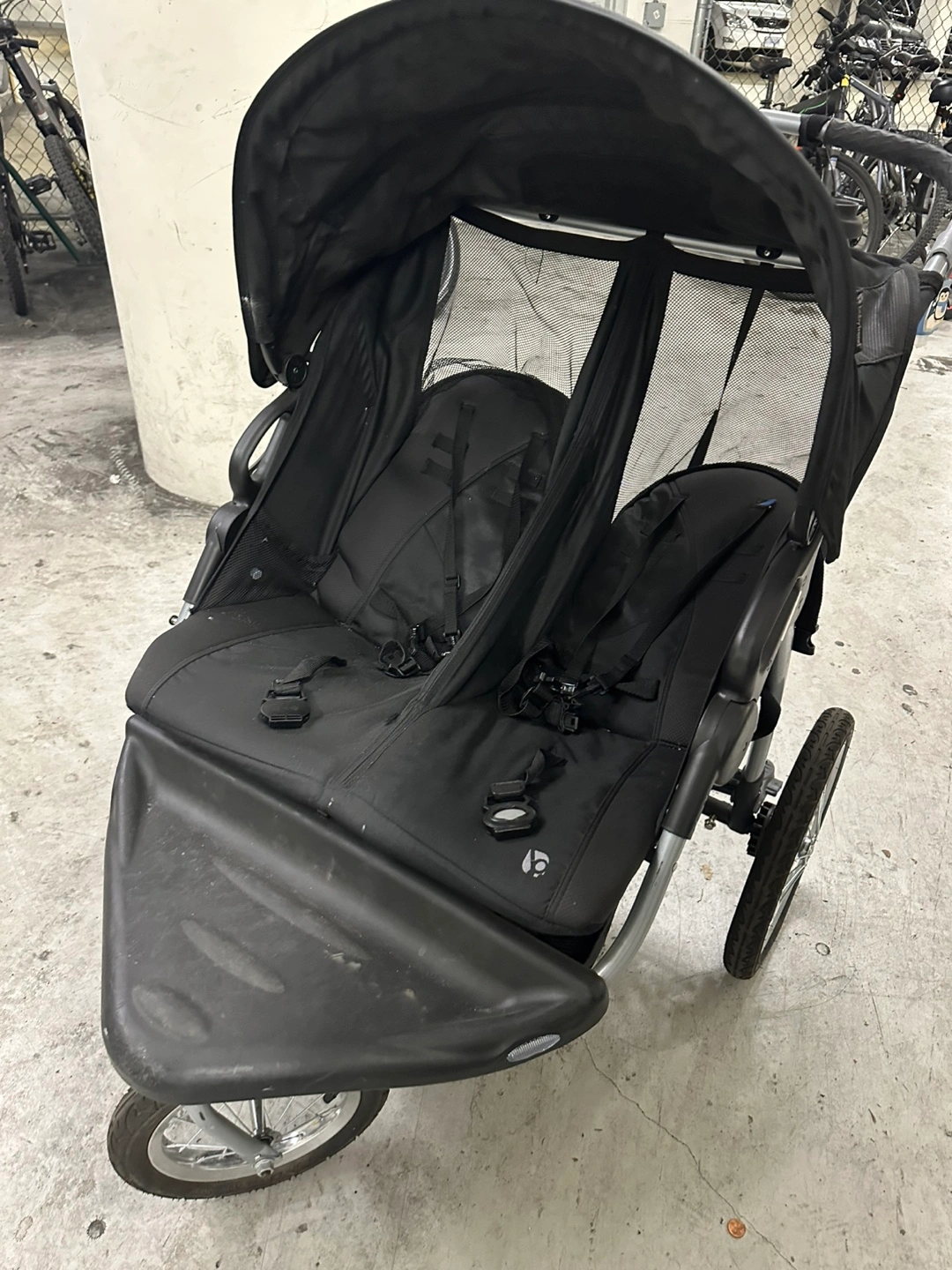 Selling a Baby Trend double jogger stroller in black! It's perfect for taking two little ones out for a stroll or jog. This stroller is designed for comfort and convenience, making outings easier for both you and your kids. It has a sturdy frame and smooth wheels for a comfortable ride.
