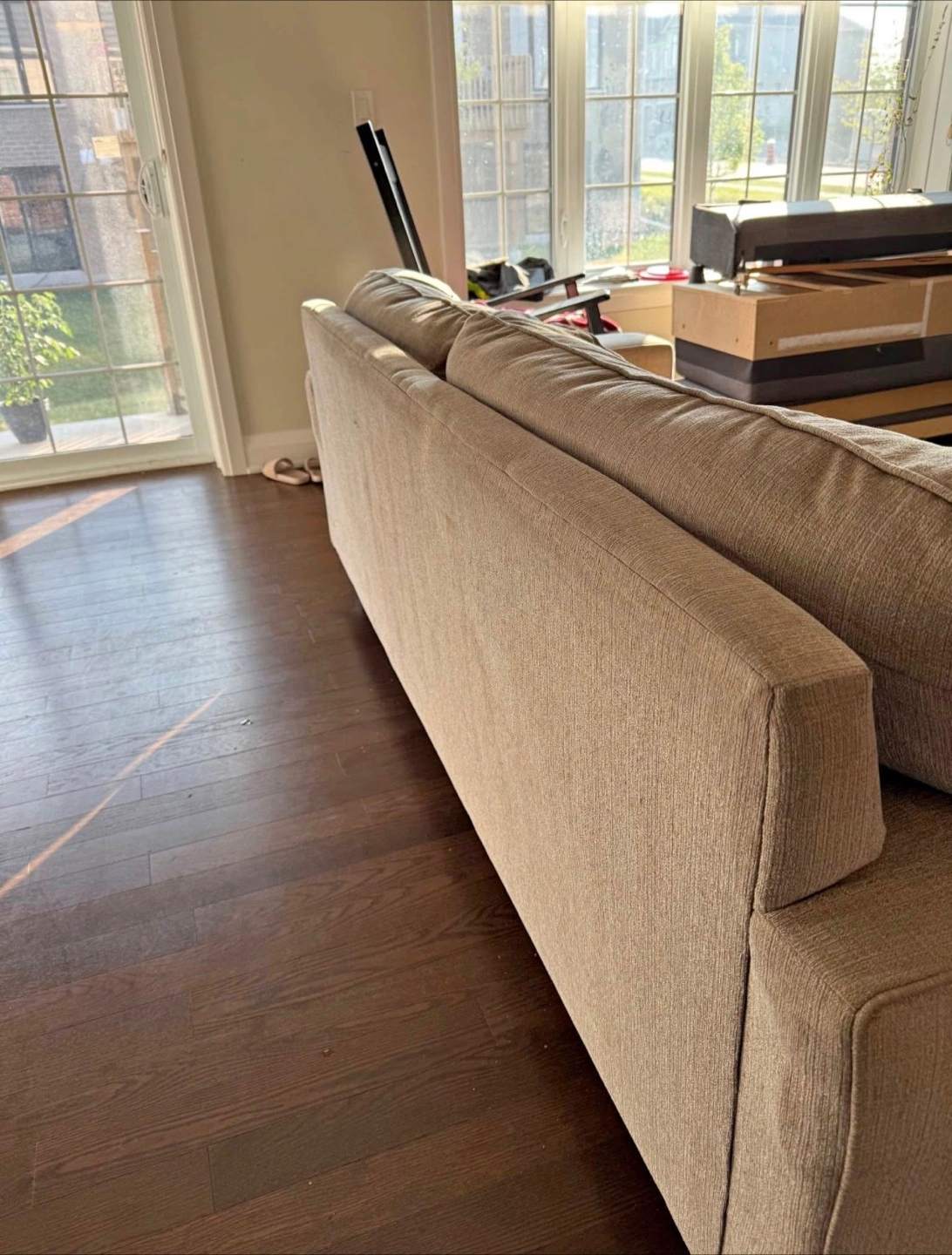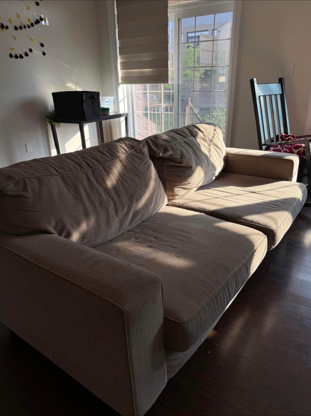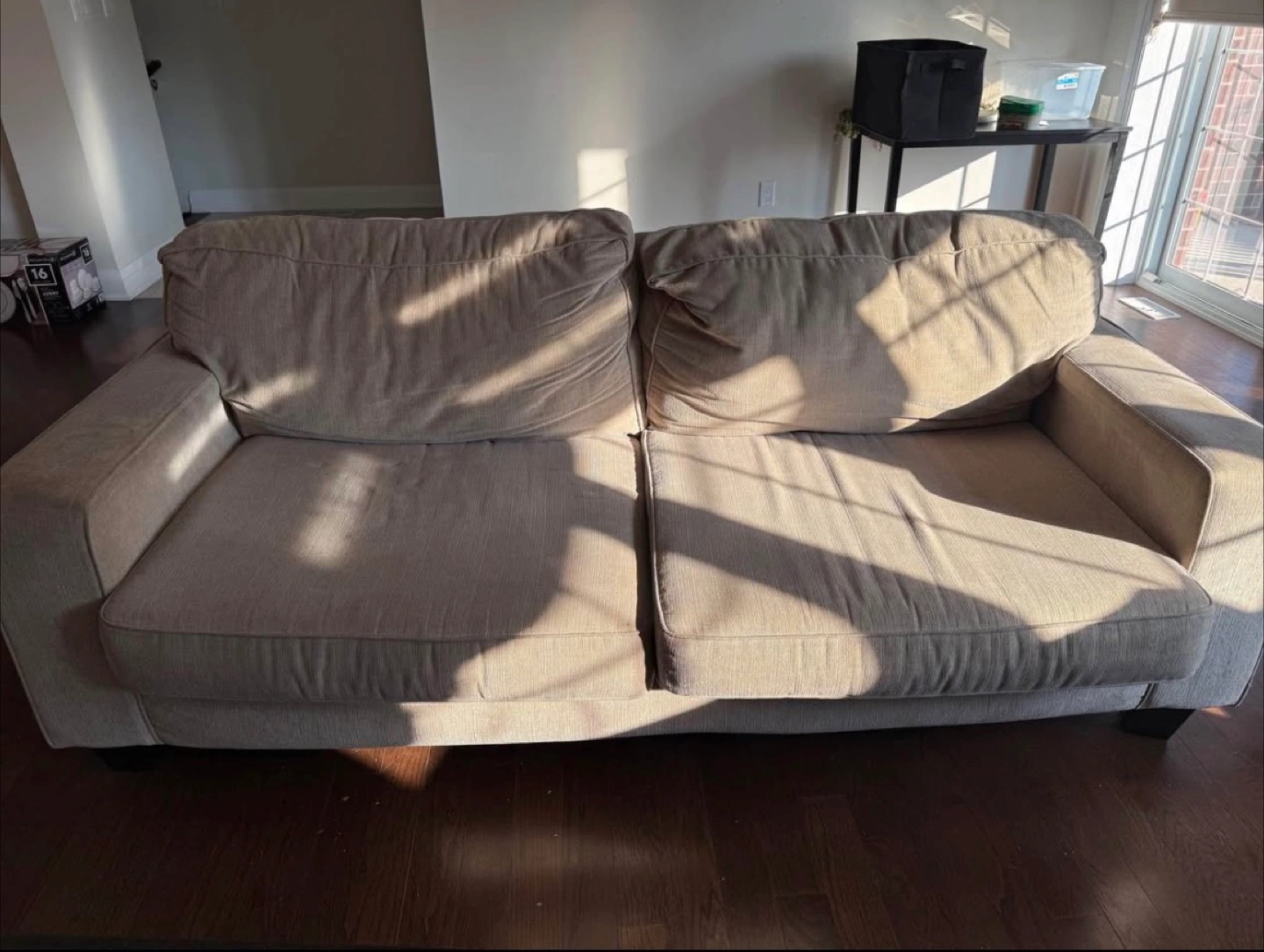 Selling a comfy beige sofa. It's in great shape and ready for a new home! Perfect for a living room or den. Feel free to message if you're interested