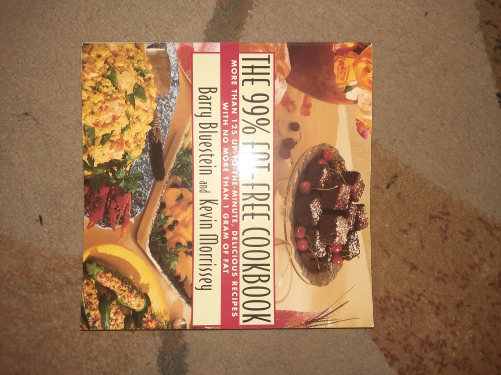 This is a cookbook titled The 99% Fat-Free Cookbook by Barry Bluestein and Kevin Morrissey.