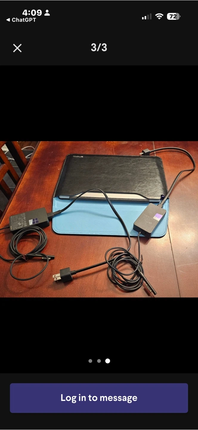 Microsoft Surface Pro 4 tablet. It's silver in colour. Includes the original charger and a black protective case.