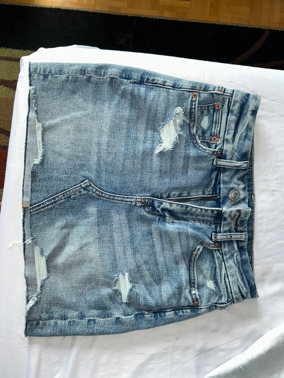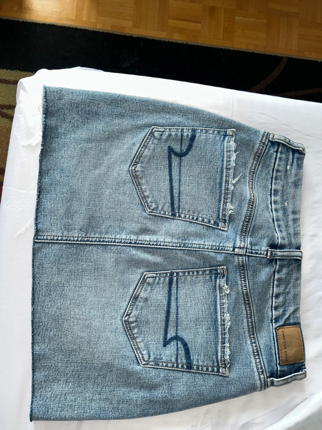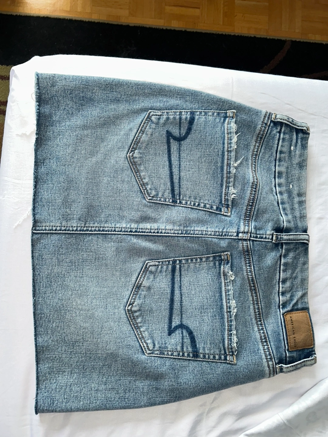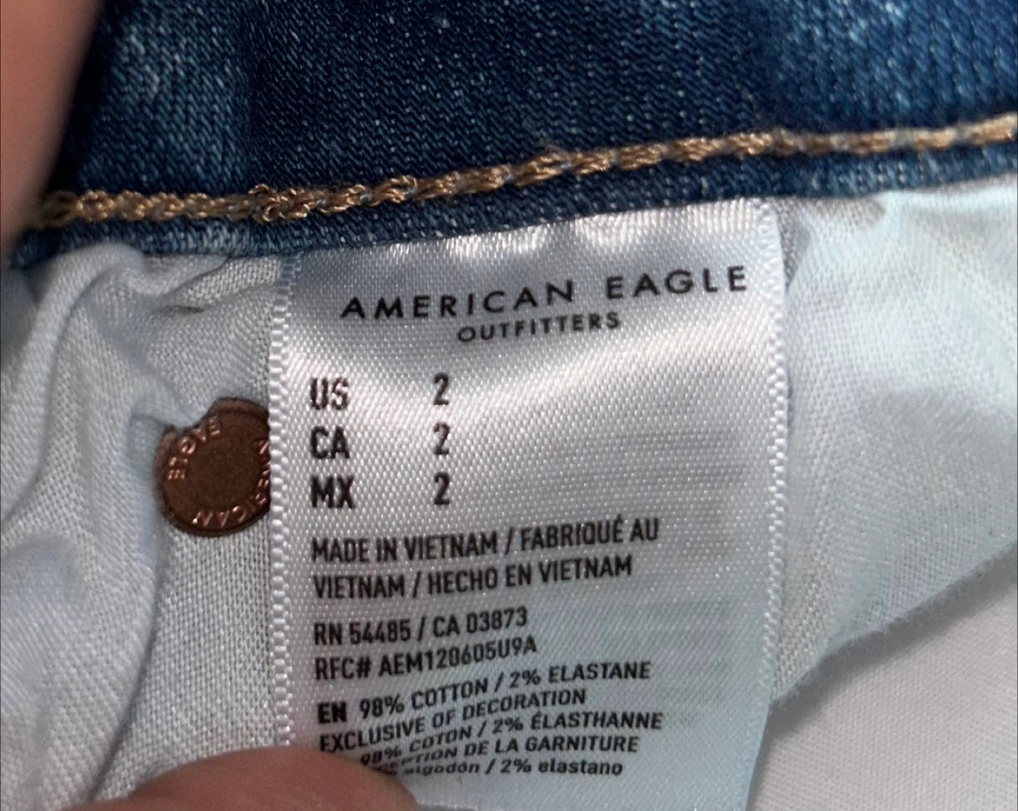 Selling an American Eagle denim mini skirt in size 2. It's in great condition and made of 98% cotton and 2% elastane. Perfect for a casual, stylish look!