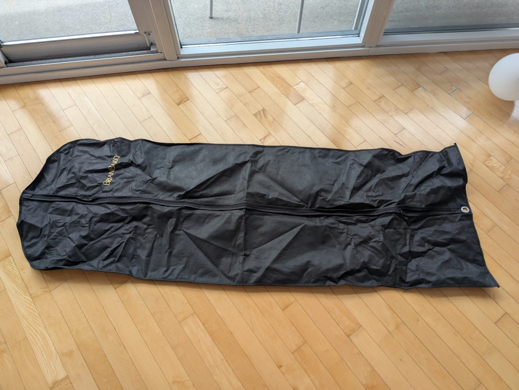 Selling a black garment bag by Brian Bailey. It's in good condition and perfect for storing or transporting your clothes!