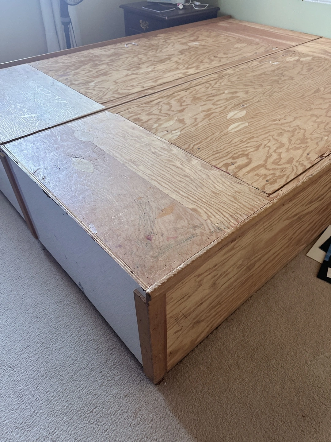 Selling a wooden storage bed frame. It's sturdy and functional, perfect for a bedroom setup. It has a natural wood finish that would look great in any room. Feel free to reach out if you're interested!
