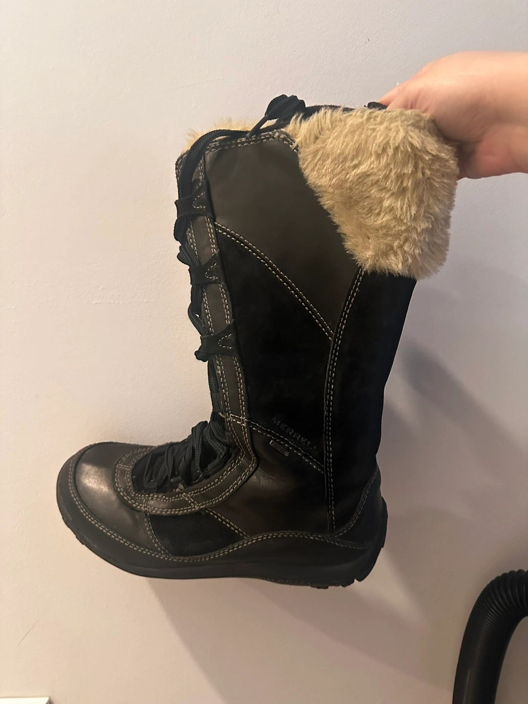 Selling a pair of Merrell winter boots in black. They are in good condition and ready for the snow! They have a faux fur trim at the top. Please see photos for details