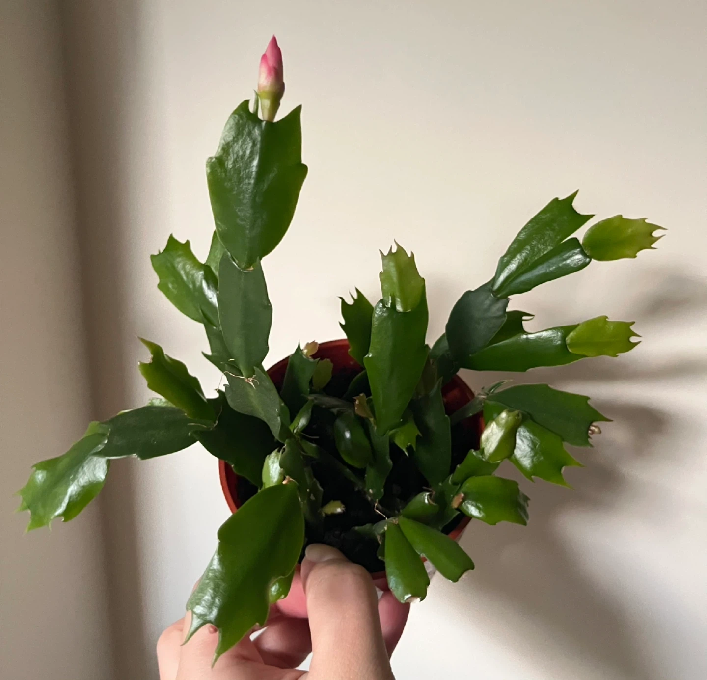 223Selling a Christmas cactus plant! It's currently in a green pot and has healthy-looking green leaves with some red buds. Perfect for adding a touch of greenery to your home