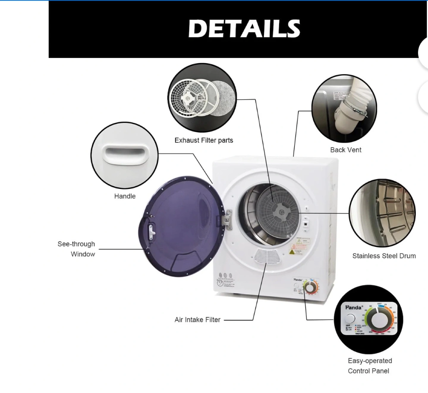 Looking to sell my Panda portable dryer. It's perfect for small spaces and apartments. It features an easy-to-operate control panel and a stainless steel drum. The dryer also comes with exhaust filter parts and a back vent. Great for anyone needing a compact laundry solution!