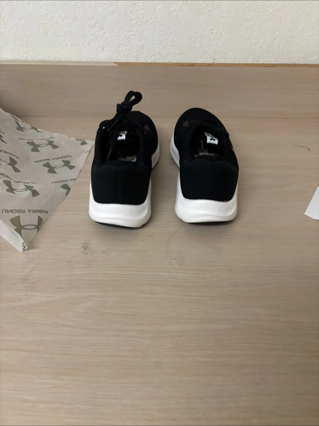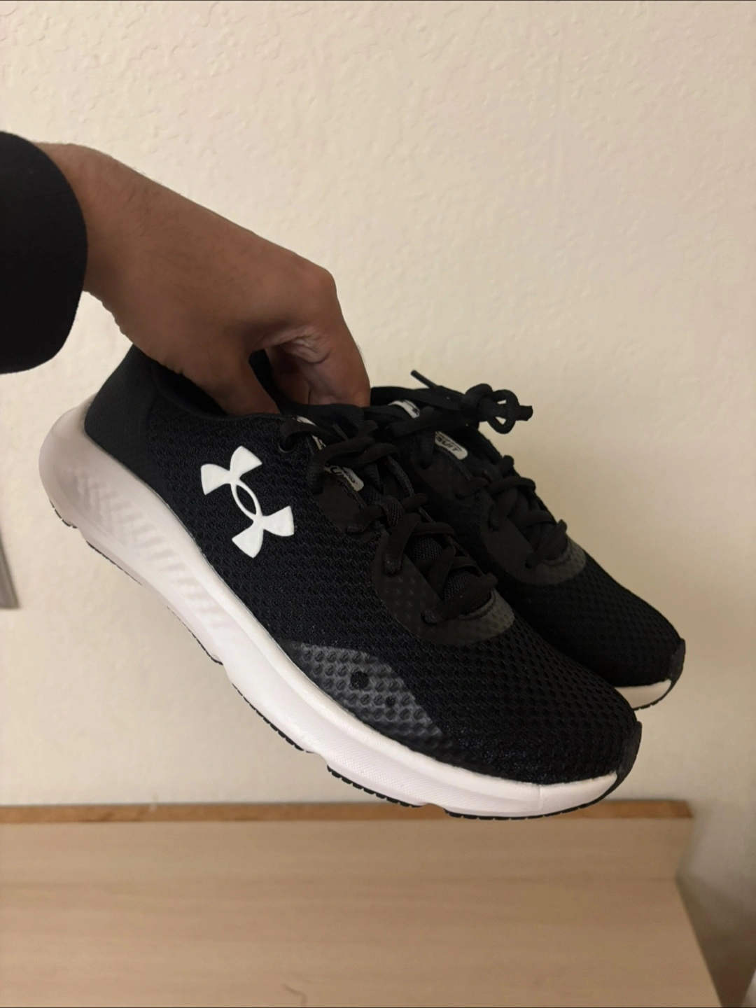 Selling a pair of Under Armour Surge 3 Deluxe running shoes in black. They are in great condition and ready for a new home! These shoes are lightweight and comfortable, perfect for running or everyday wear. The white soles provide a nice contrast to the black upper. Grab them while you can!